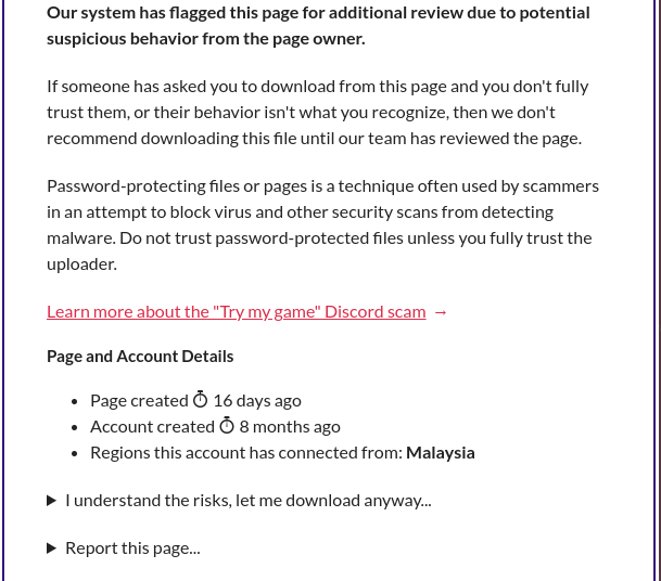 Press the button ' I understand the risks, let me download anyway'