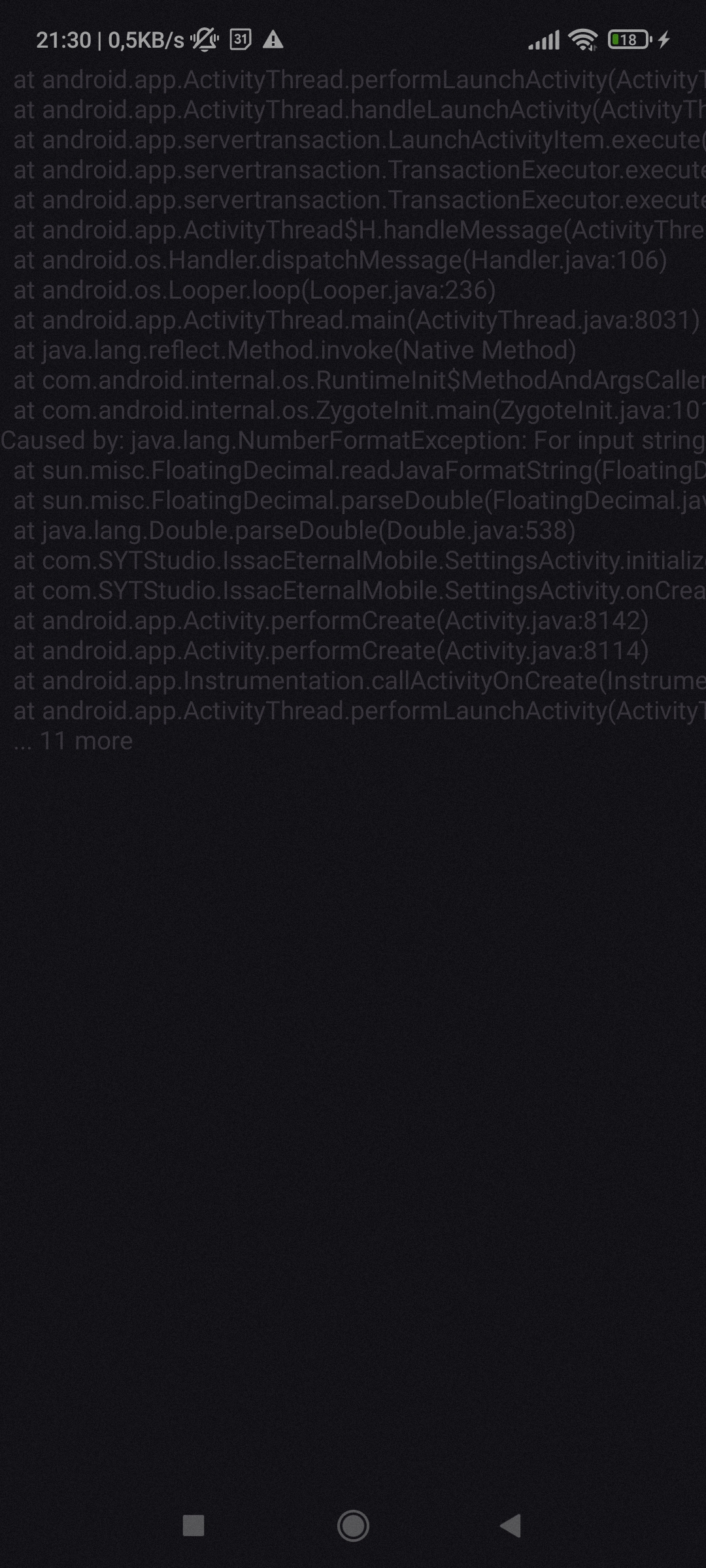 That's error with langauge app is made in english and Decimals use dots but your language set "," also that error is fixed but i didn't unpload yet because i'm searching a way how to add save, I'm really sorry for delaying a update