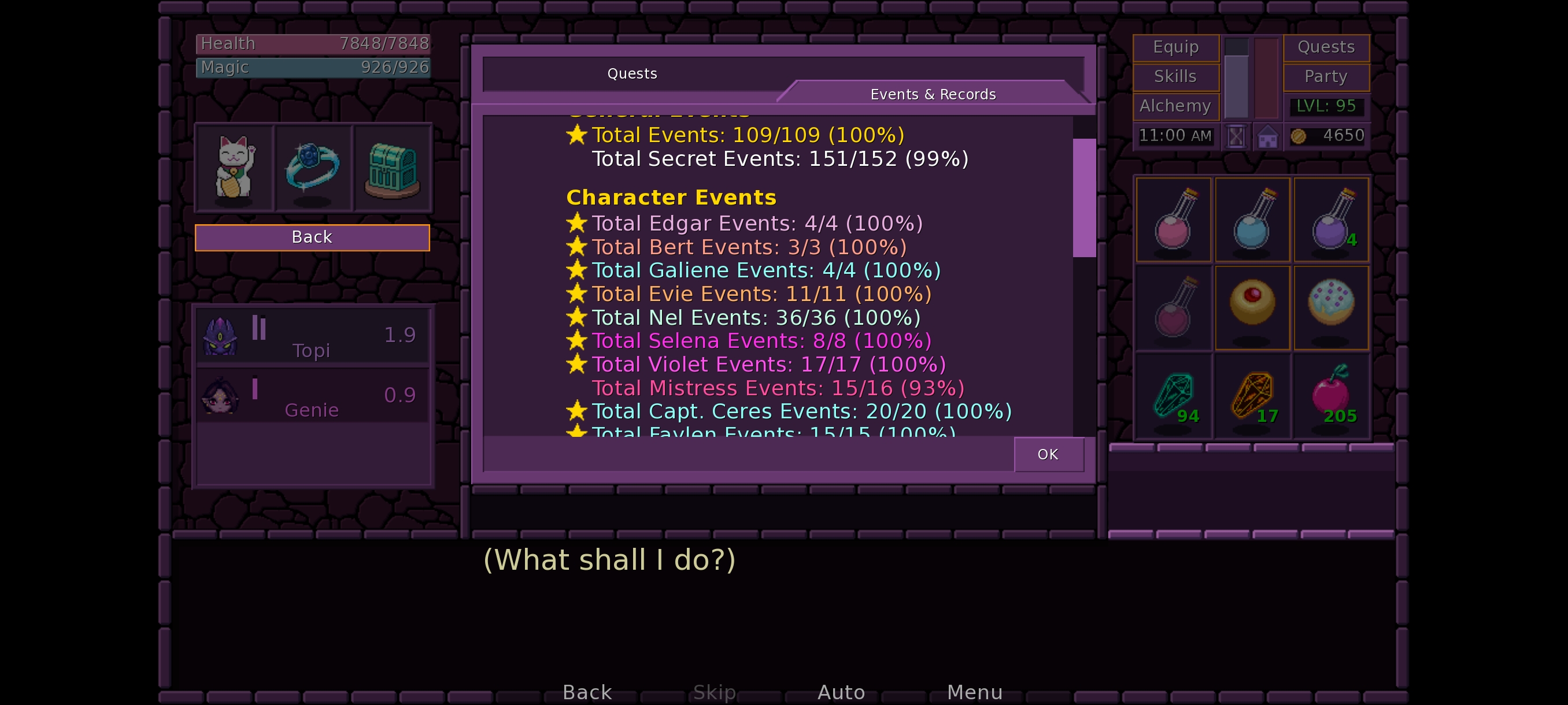 Néhány Domenei-beli esemény több napos szünetet igényel a játékban. Ezért vagy rendszeresen meg kell látogatnod a jósnőt, vagy egy új esemény történhet véletlenszerűen, ha teljesíted a feltételeit.