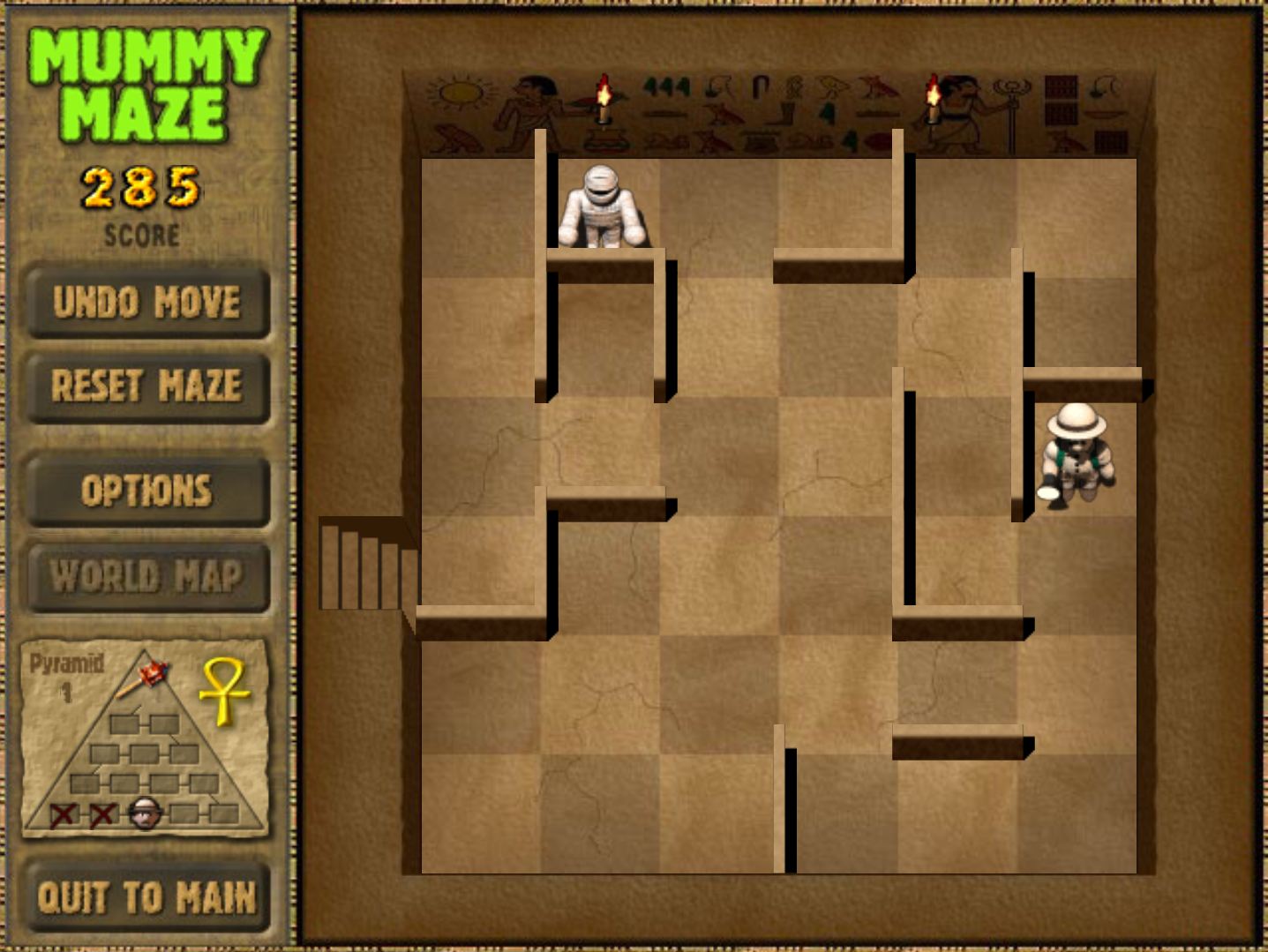 Can only move the mummy to the right before getting caught if I move anywhere else but left. Once he is left, I got free range of the bottom 3 rows. But once he comes out, I am trapped and caught. If this is possible, I would love to know how as I cant even find it on any videos.