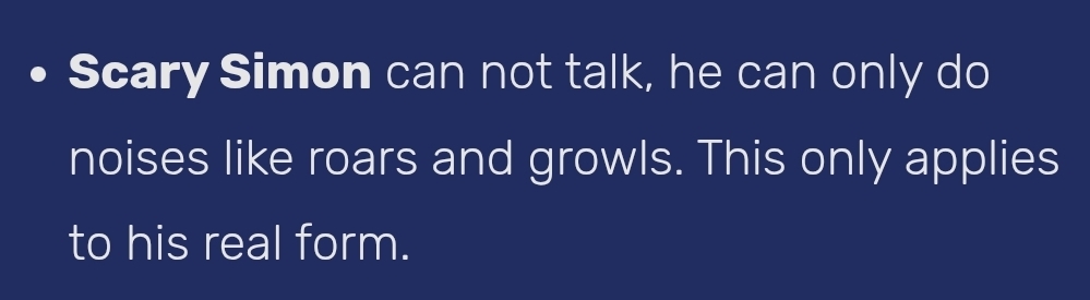 ANOTHER FUN FACT!:Simonos Can Not Talk. He only do noises like roars and growls. This only just applies on his real form.