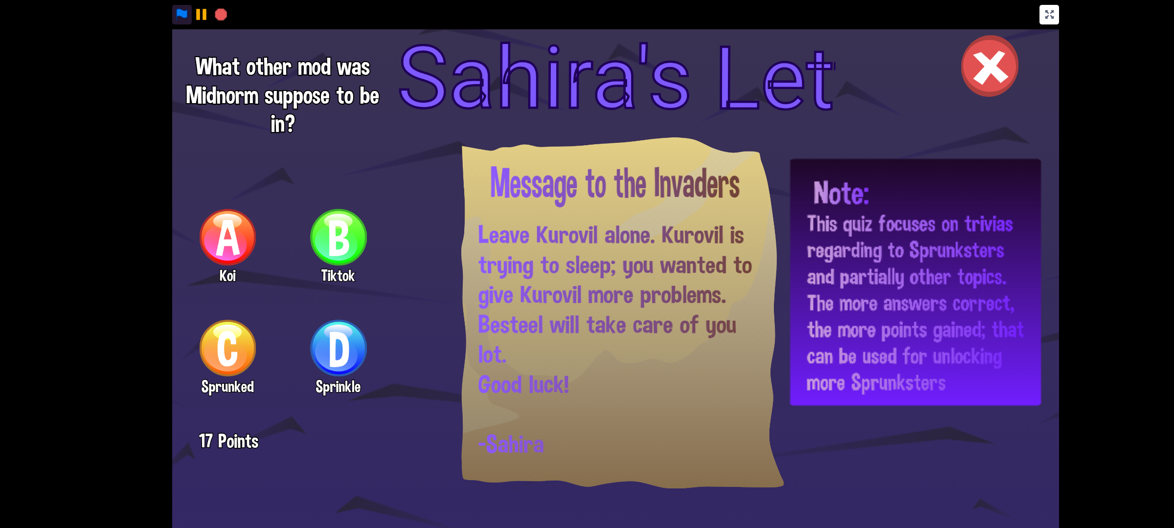 @Rufferstuff why you put Forsaken, Dandy's World, Montagem Sprunki and Tiktok as a answer 🤣