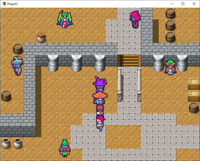 See two examples below: One using RTP tilesets and another one with my tilesets from the Tiny RPG Series:
