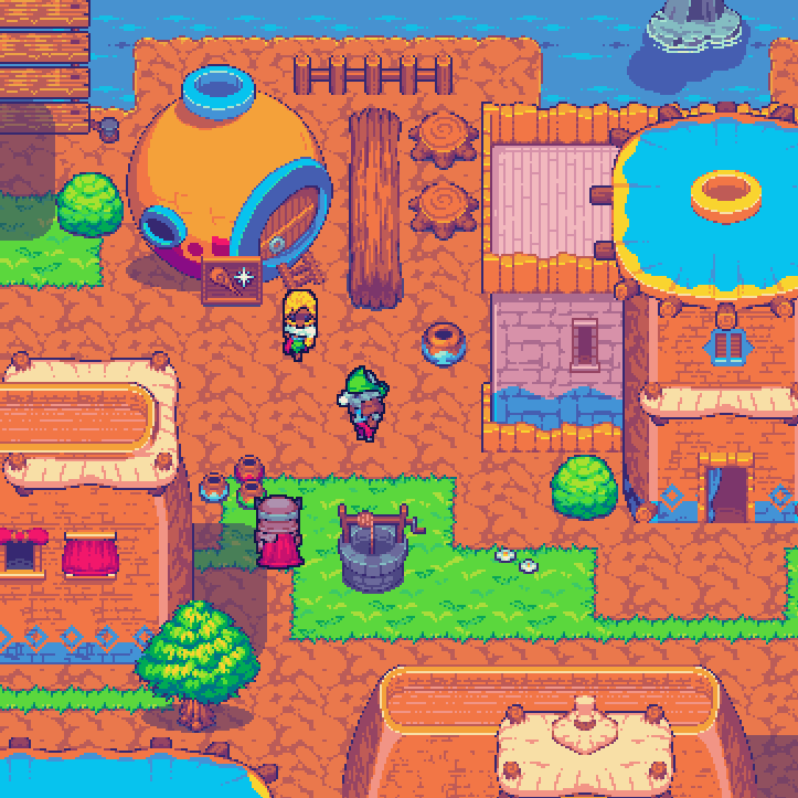 The tool exports two versions: a 1x version and a 2x version. Now, the choice depends on the coherence you are looking for. If you are going 1x, then the tileset also need the 1:1 pixel aspect ratio. Also, for the 1x version, you might prefer items on the tileset to be way smaller than the default RTP items. If you go with the 2x, the tileset also needs the 2:2 pixel aspect ratio - that is why I also work on tilesets for the series, that is such so the user have tilesets that matches the aesthetic;