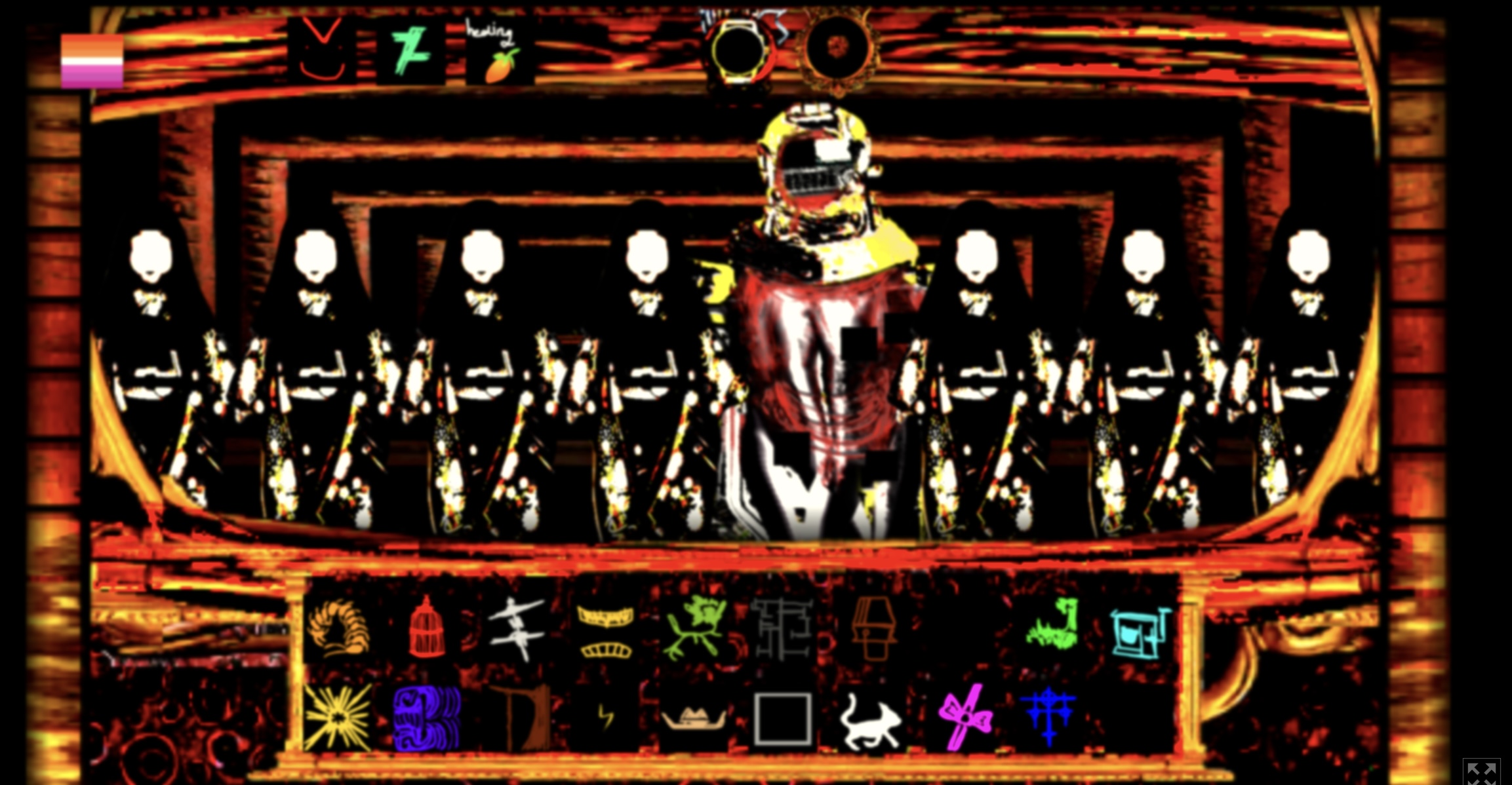 probably his chest, because from his fakeout sprite, the weird lil cloak metal suit thing is opened in his horror sprite.