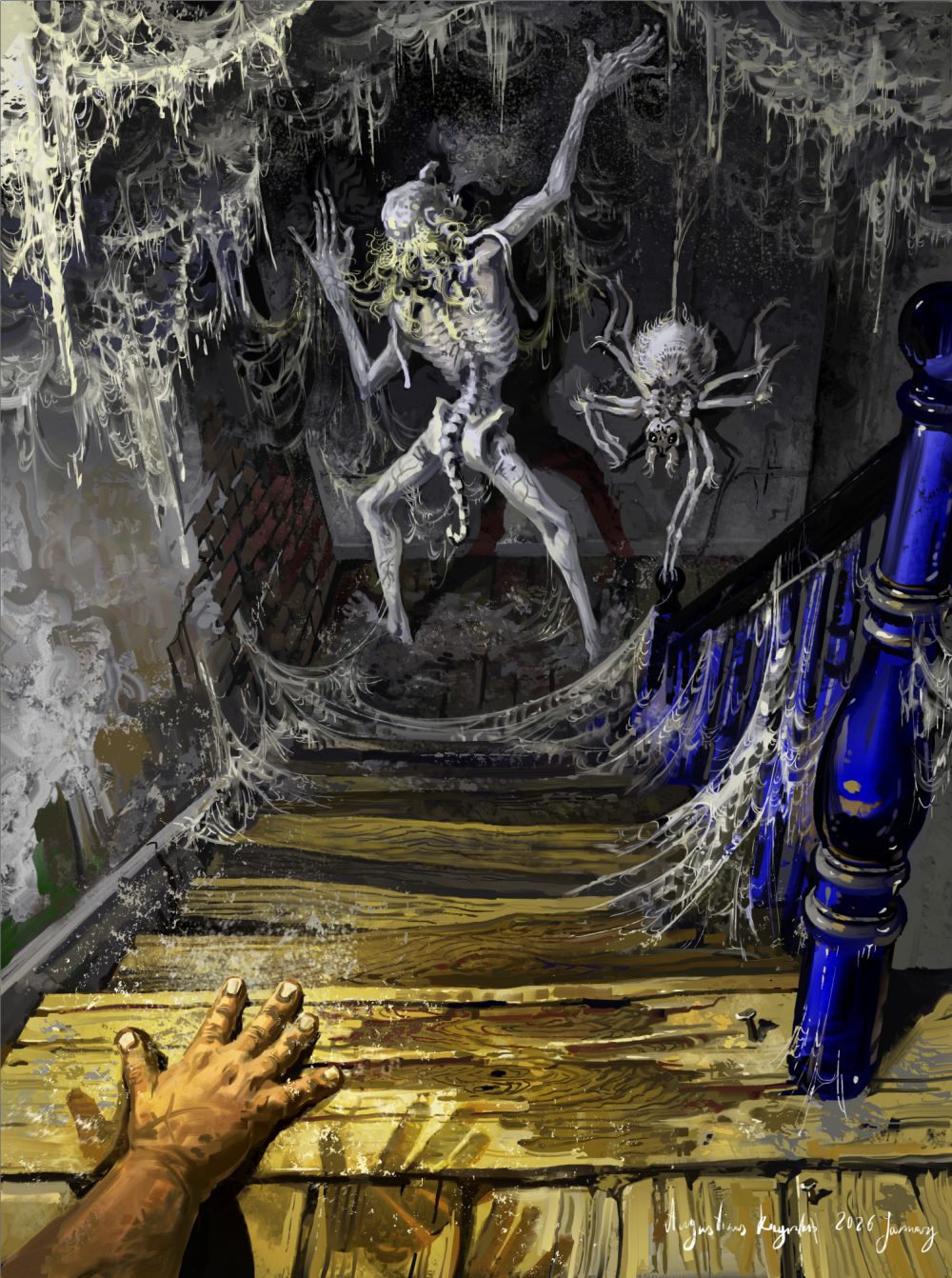 I painted this guy and I'm planning to use him as an NPC in the testing fields. At first I sketched him out as a monster, but I liked the general look of it and decided to turn him into an NPC instead. He will be somewhere on the horror side of the Testing Fields hub area and probably won't have too many lines, but I think it will add to the overall atmosphere of the place.