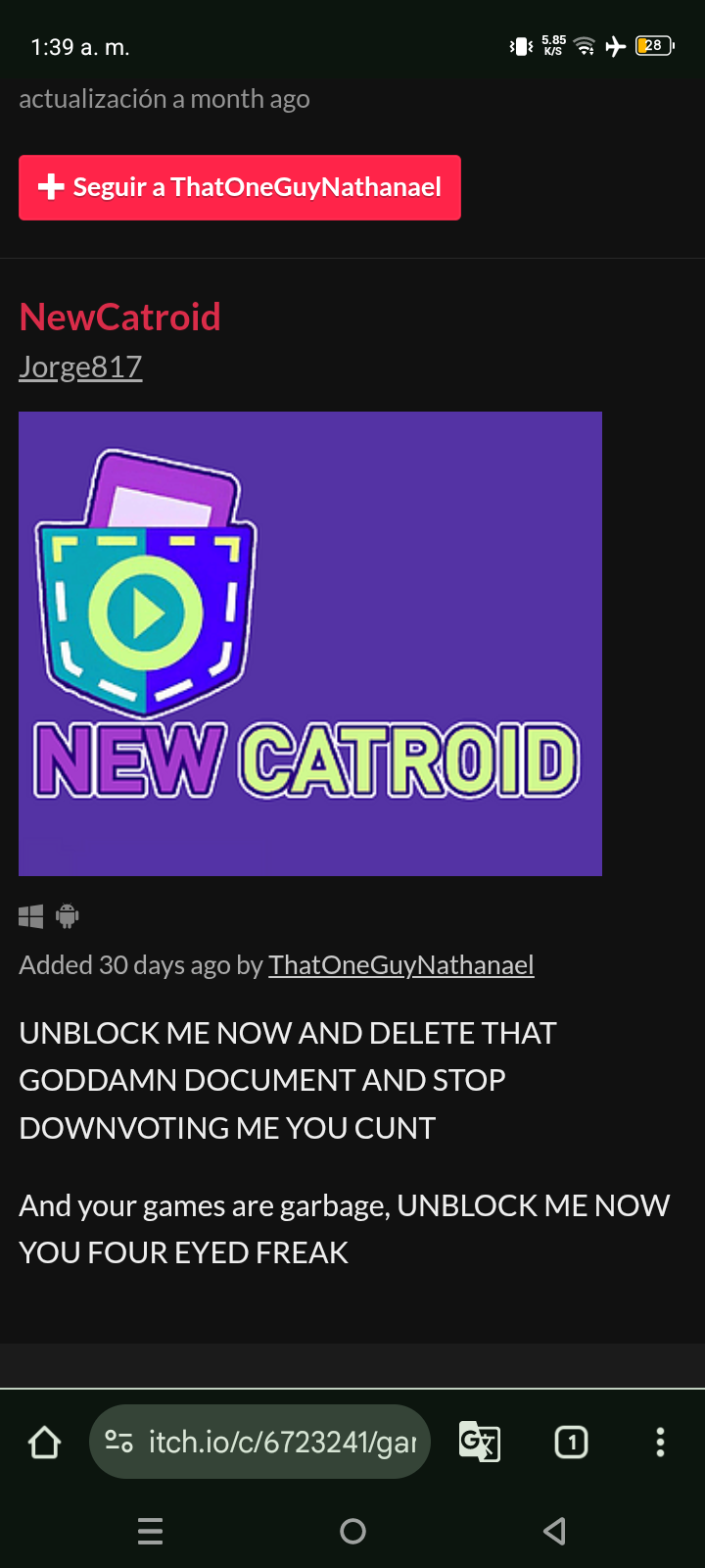 I blocked him and he exploded, he can't leave me alone if I block him