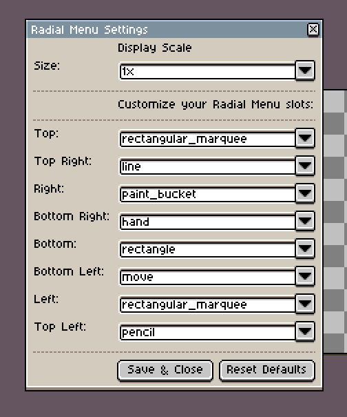Now, in the radial menu settings, you can choose different sizes: