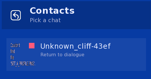 Also, somewhat unsure if I'm the one making a mess of the code you presented but I've noticed that after I did the contact name change, whenever I leave the chat, it shows this instead of the changed name "Junichi"