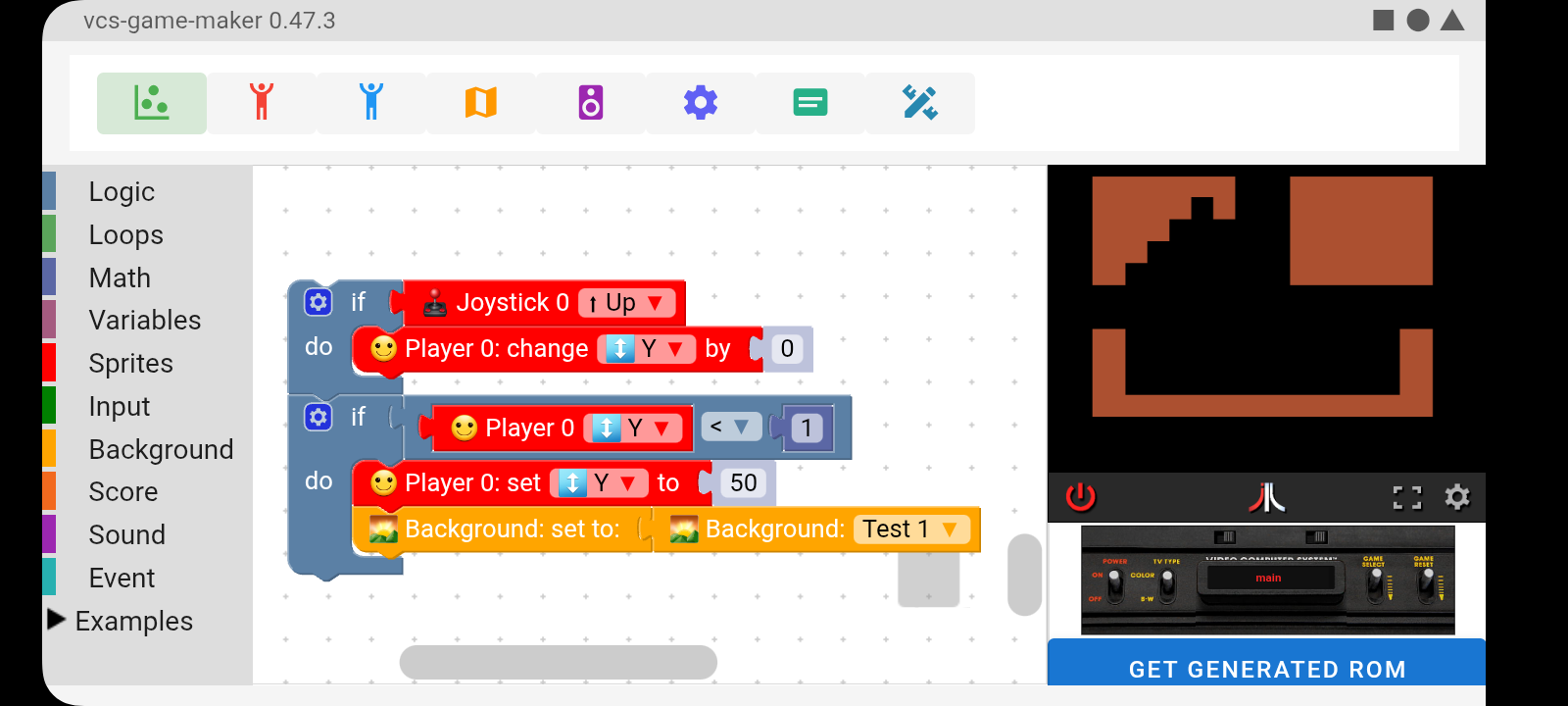 hello Haroldo! The program is superb! I've thoroughly enjoyed tinkering with it, but I've hit a wall. I'm trying to code a simple 6 screen zelda clone, no enemies or anything, just a simple empty world map to practice with. I'm having trouble getting the screen transition to work (trying to go for vcs adventure simple screen flip method) I've attached a screen grab of my current idea of going about this, and it works for going left and up a screen, but won't when going right and down.