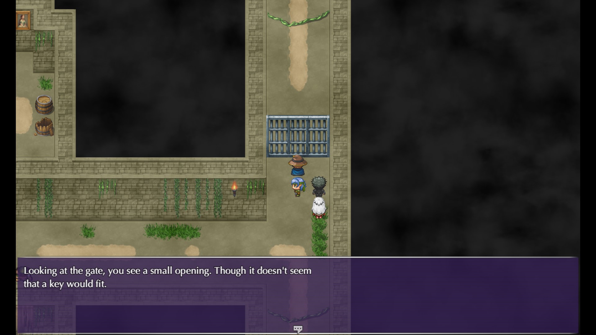 found the missing hidden wall and got the paintbrush to open the gate and guess the right colors to paint a picture to open the door to a chest and an epic boss fight(which I beat). so thanks for help again.