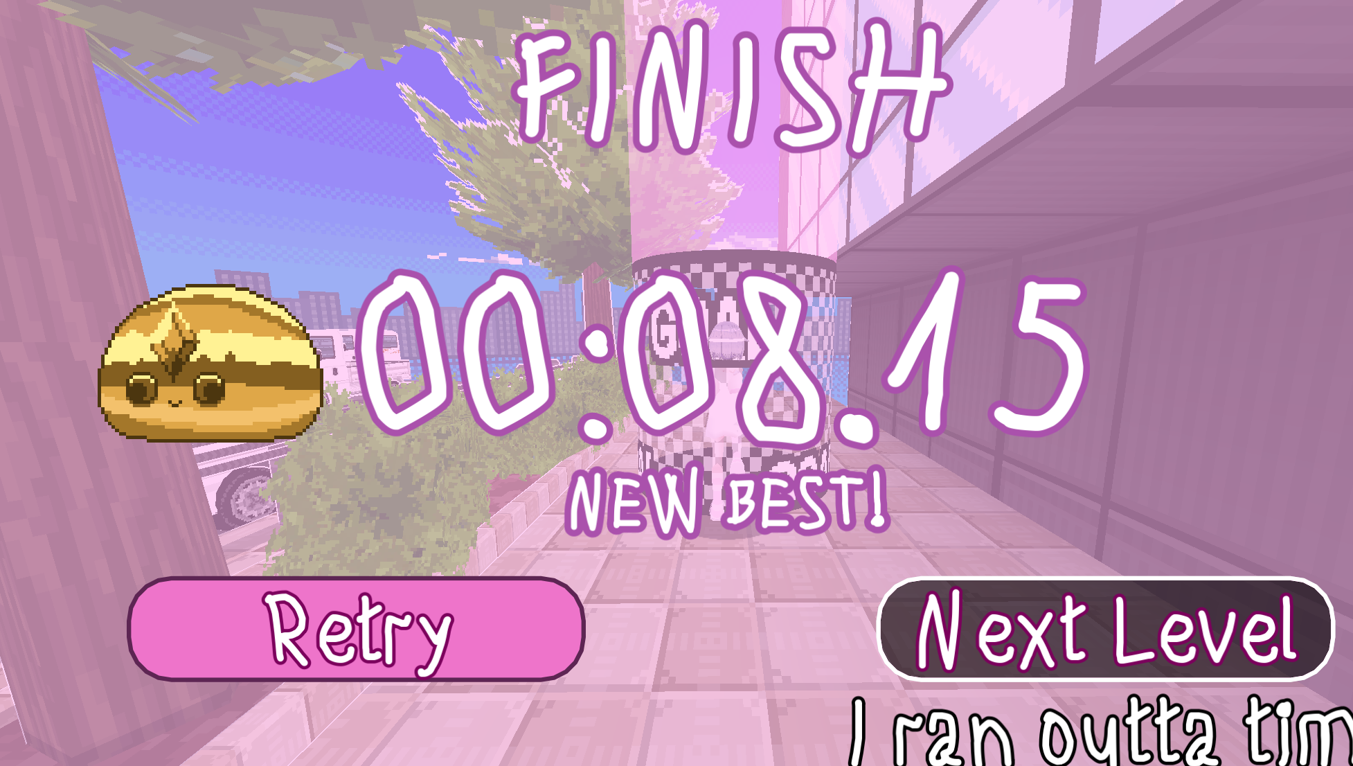 However, after I cleared the game once using the second powerup, I retried my "go into traffic" strategy and boom! I got a new record time!