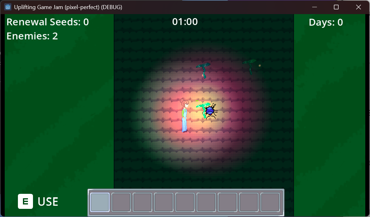 Biggest change would be to add a way to skip to night early, just waiting around for 60s really hurts player engagement. I didn't know about the shop until the third time I tried to play, just never walked there I guess... Adding a buy button so you can click to inspect since there seed descriptions (or update description on hover). Tried a few runs, each time night 1 bugs got stuck at decoys and wouldn't move anymore...