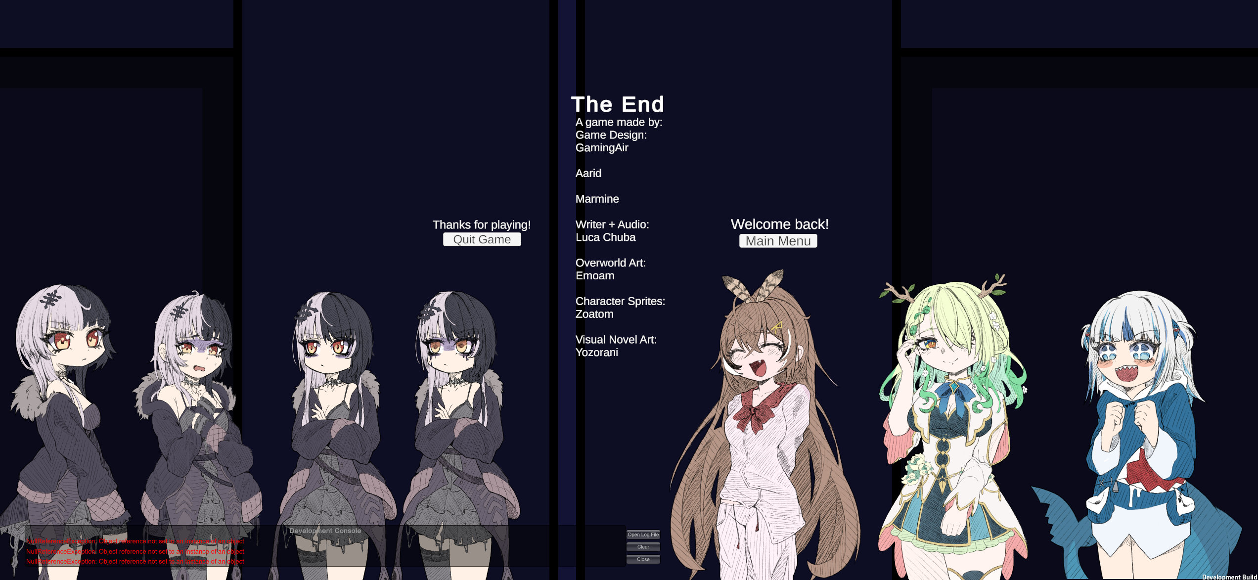 It’s a really cute game. Wandering through the different rooms brought back old memories, which made me feel a bit emotional. Having to rewatch the script every time I got a quiz question wrong was slightly inconvenient. I was also a little startled by the scream at the end. Still, I had a lot of fun playing it. Also, I noticed that the Windows version is set as a Development Build.