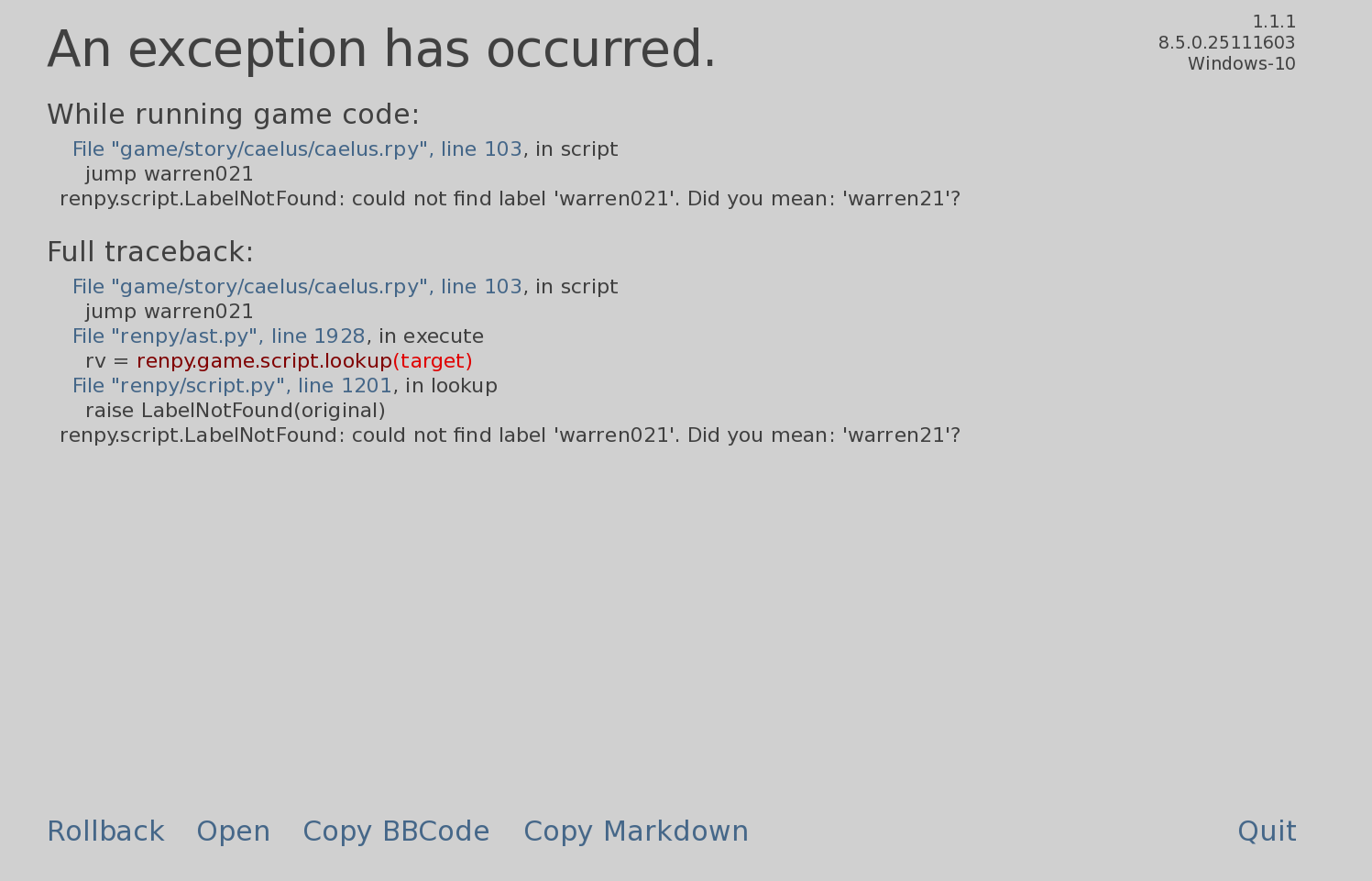 I think it was fixed, passing through his route I didnt come across any errors <3 you might need to redownload though. I dont know if it autopatches on the itch launcher