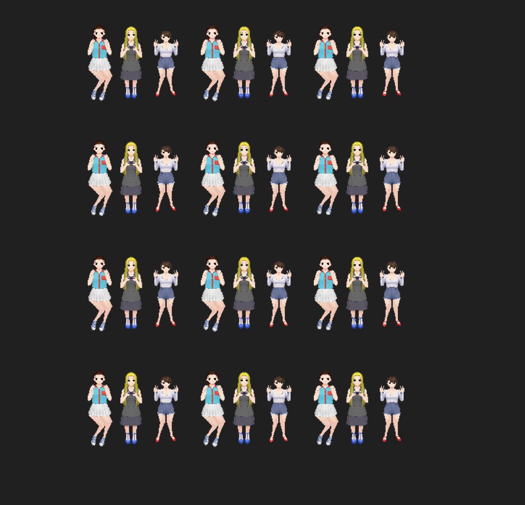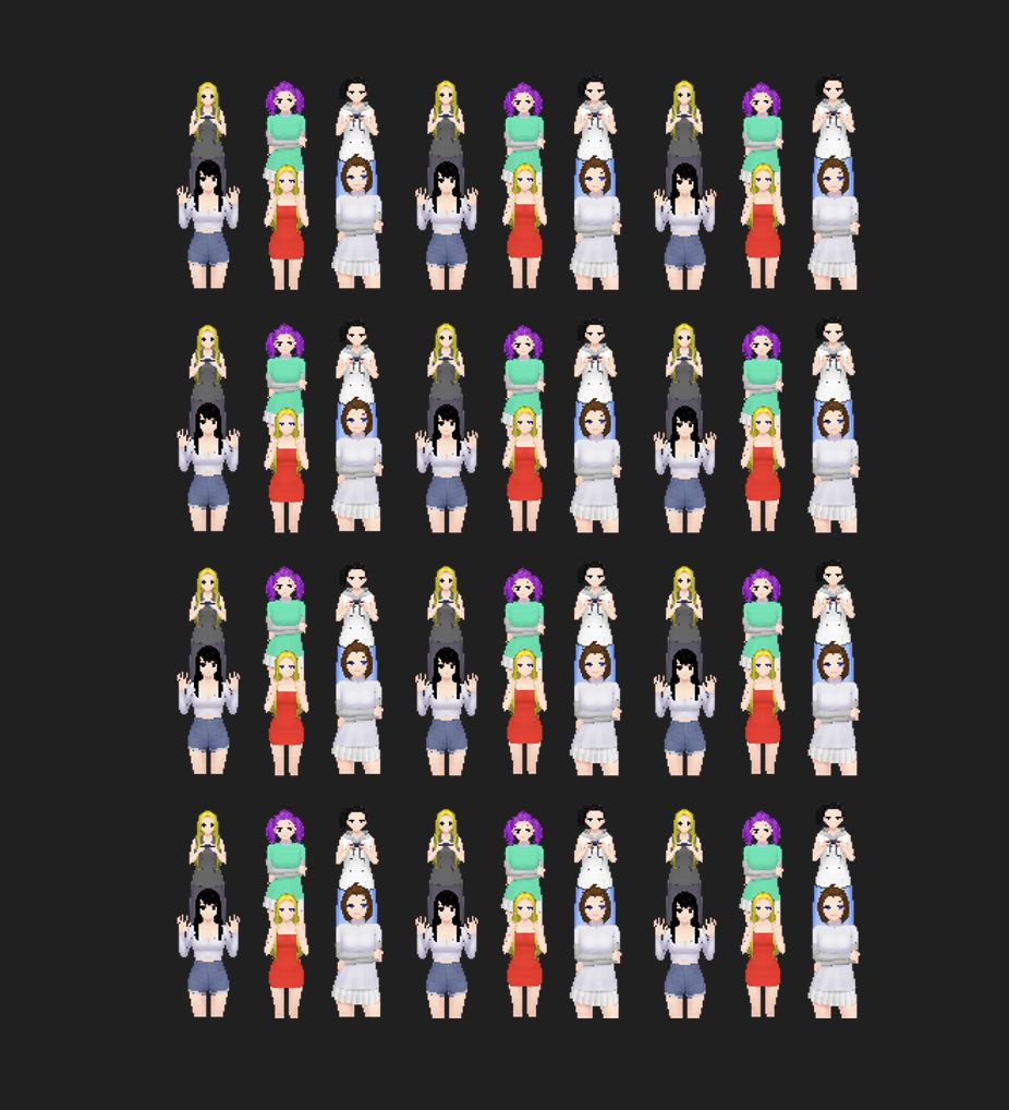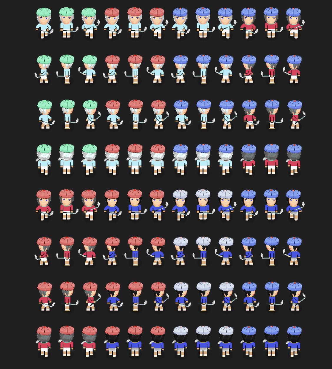 The pack contains fan sprites, one for the first row of the stadium and then for filling the row, which are arranged so that they overlap and are animated and idle.