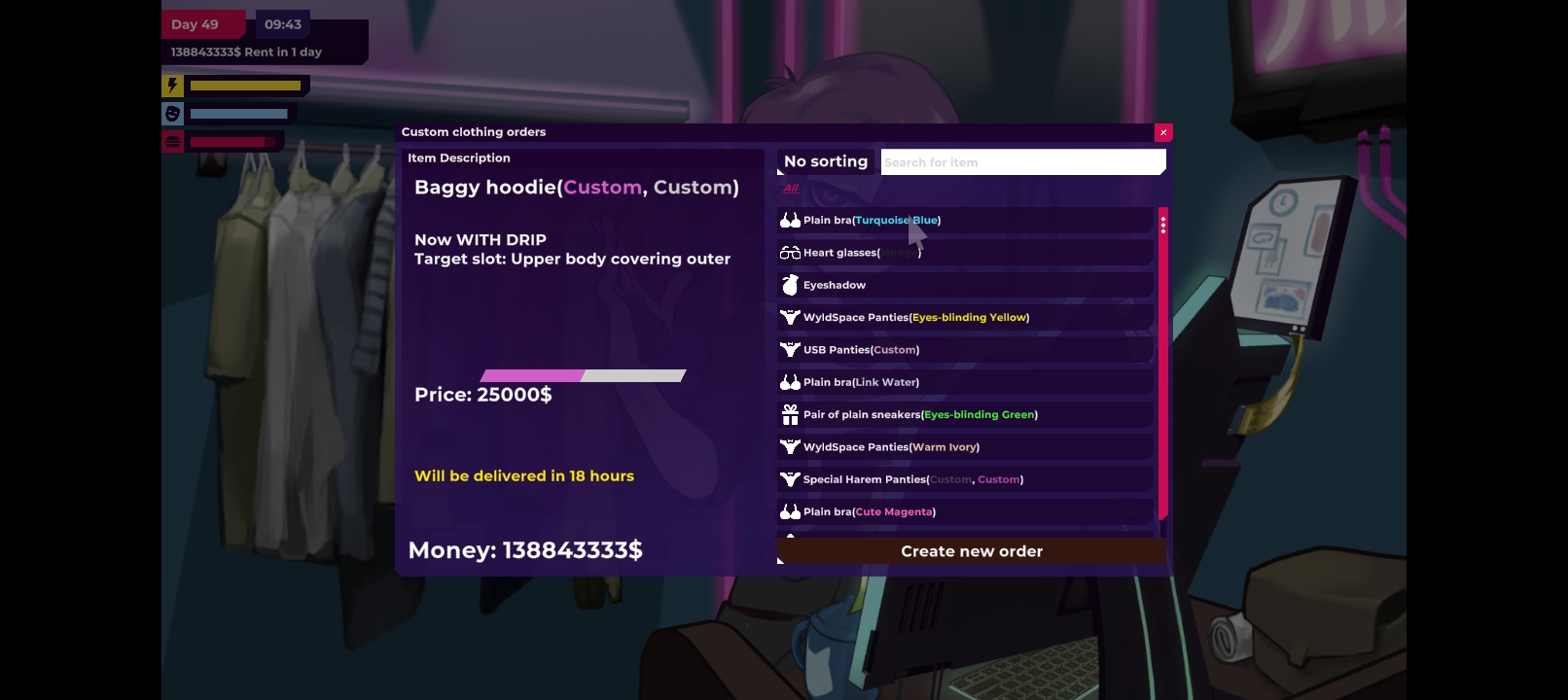 As long as you have enough money and pay for everything on the same day, all the items will be delivered together 18 in-game hours later. After that, you can go and pick them up regardless of whether you ordered one, four, ten, or more items. You can even choose not to pick them up at all, even if theyโre already paid for and ready.