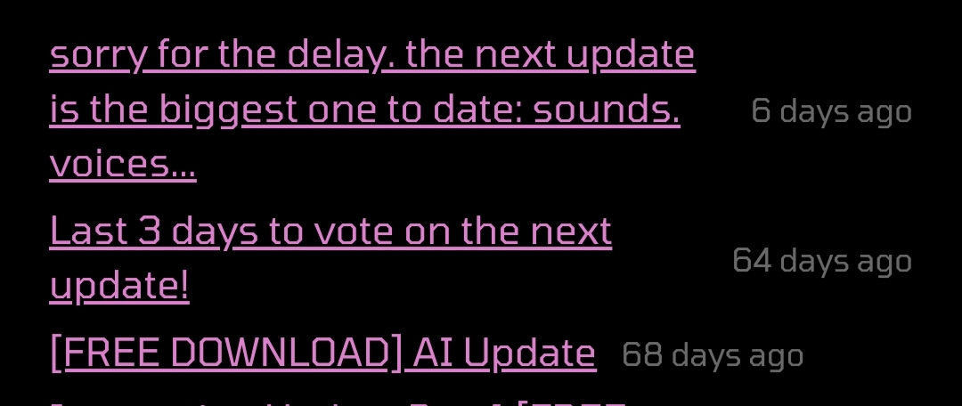 It has literally been 6 days since they posted an update on the patreon. Either get yourself a hobby or sub to the patreon, sitting here and counting the days since the last porn game update isn't doing you any favors