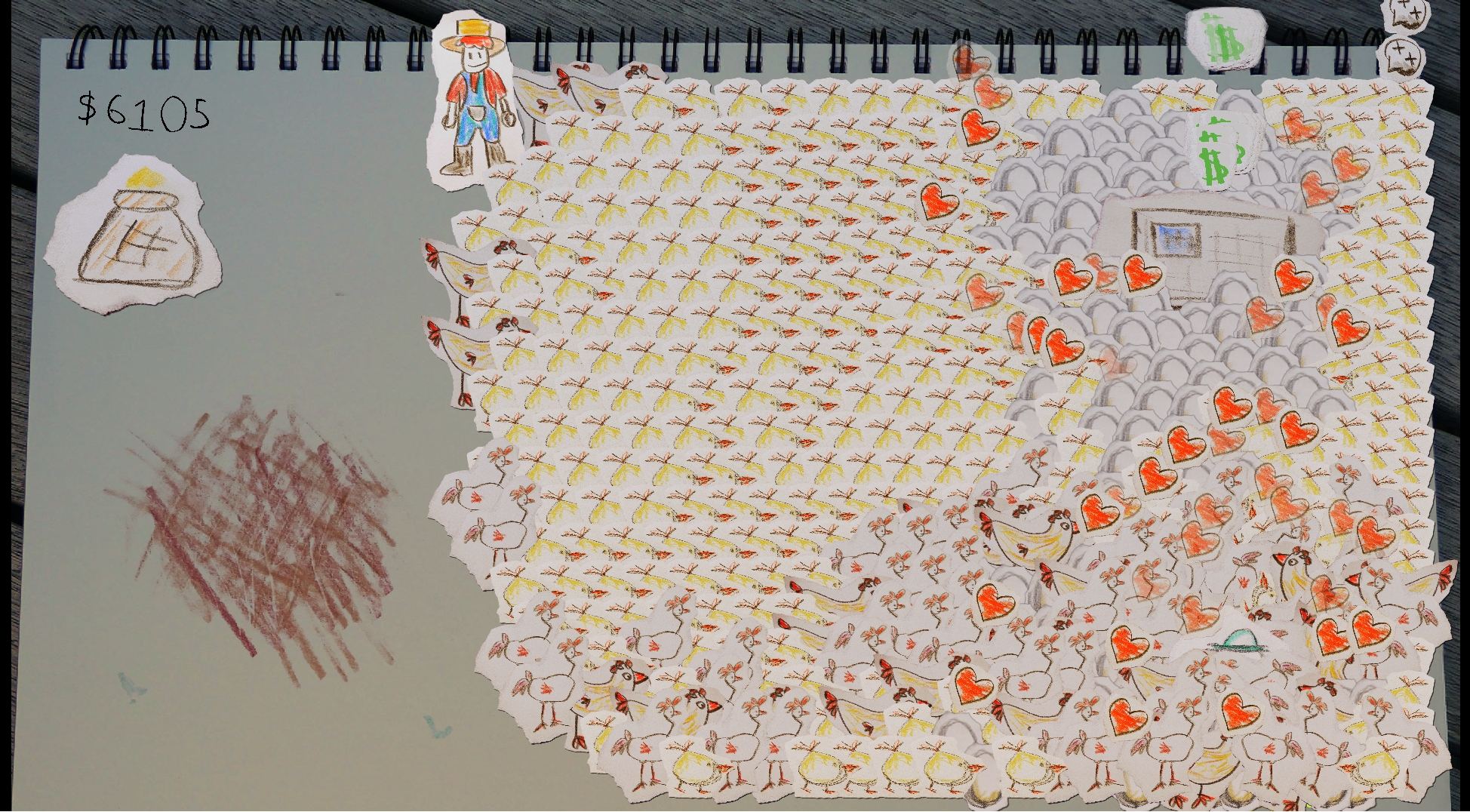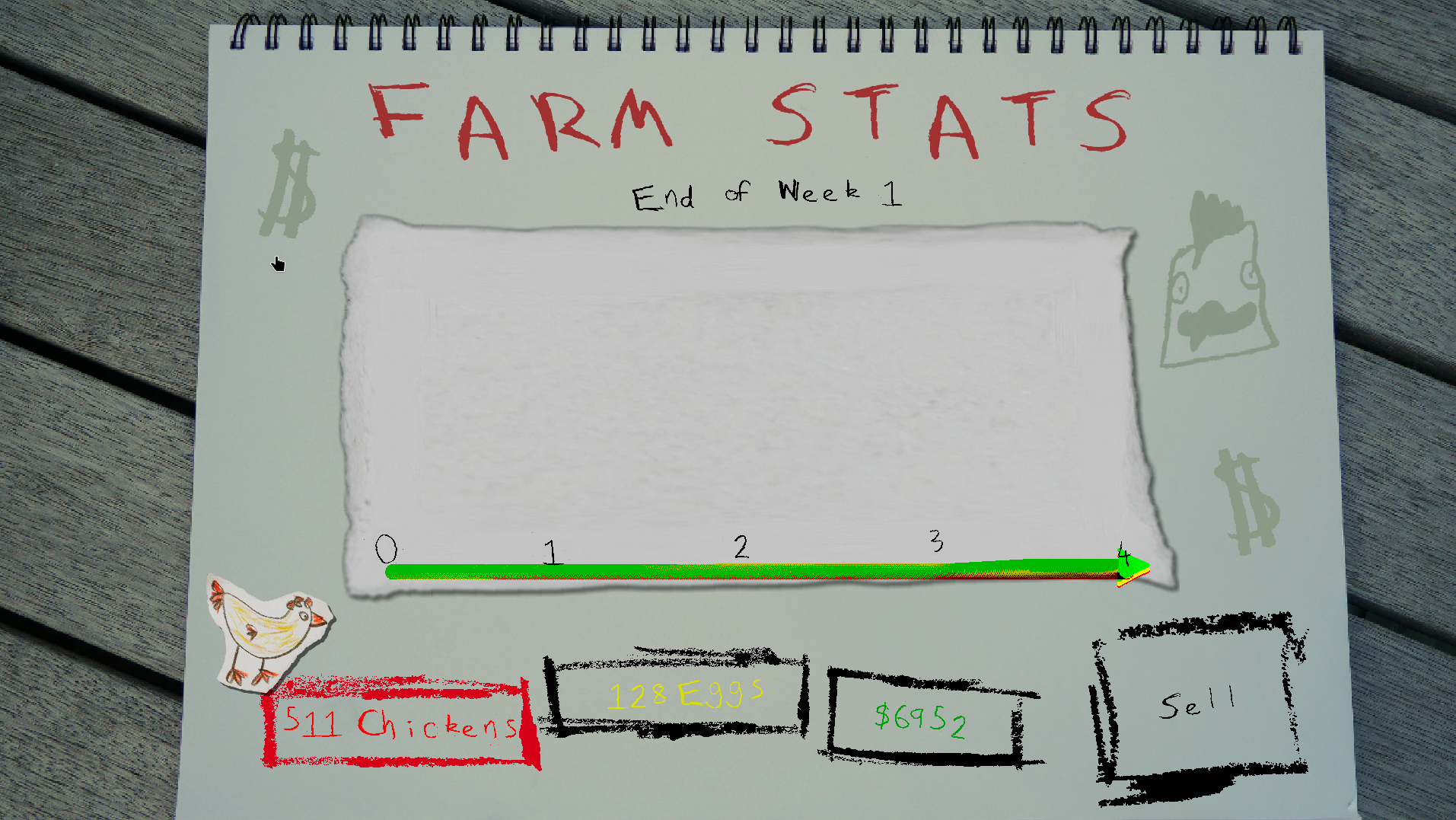 Great game, it took me a few weeks to understand why the eggs I was keeping instead of selling didn't make any chicks. I got only one rooster at the 2nd or 3rd week and I was stuck with one chicken and one rooster for so many weeks. Think at week 8, I failed to collect eggs because I was reducing the volume and I noticed that the not picked eggs generate chicks.