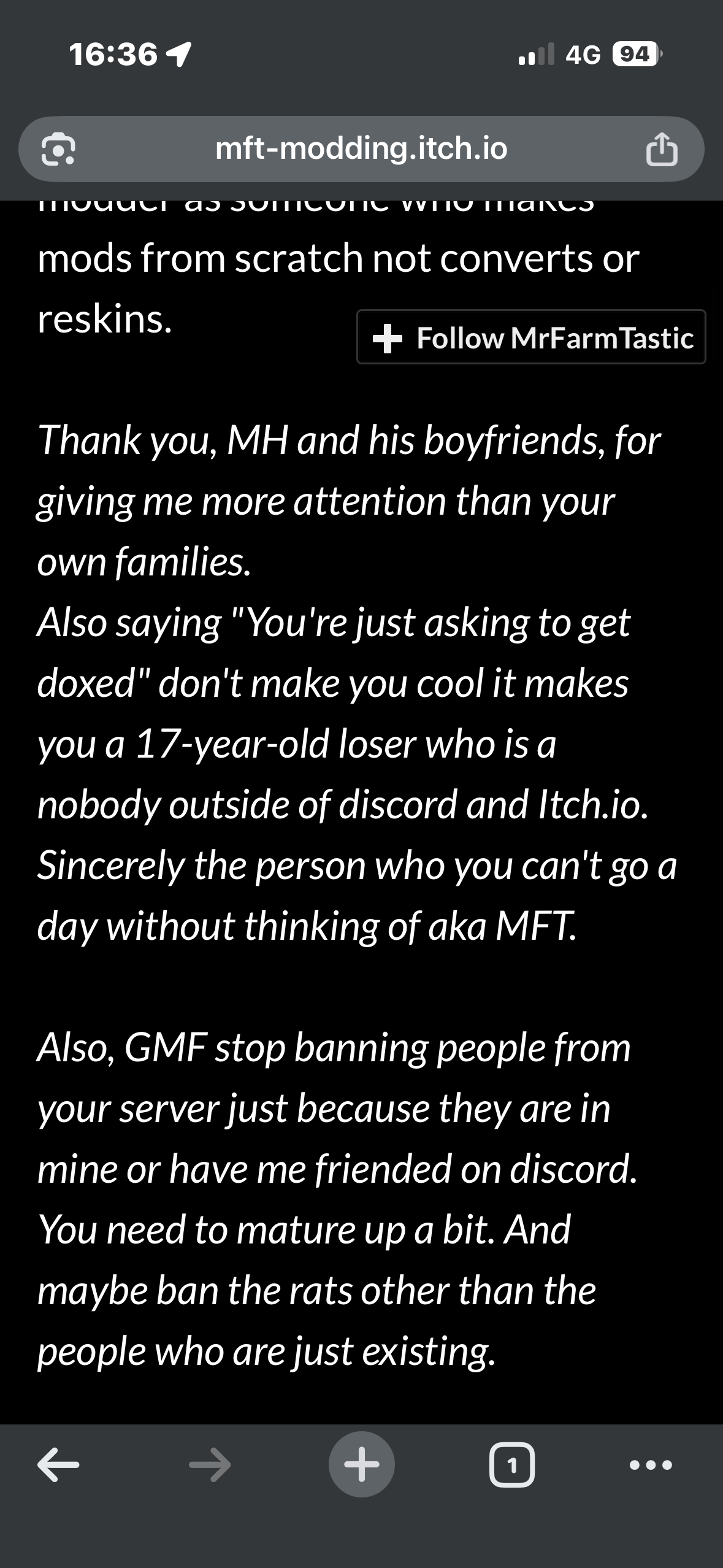 has mft deleted his itch or has he blocked me
