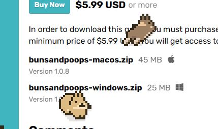 The layer options (always on top/normal/always behind) and the scaling option are particularly user-friendly - my monitors are 1080p and I prefer 400% but other sizes will work better for others. Being able to have the buns above or below windows also lets you control how distracting they are. 😅
