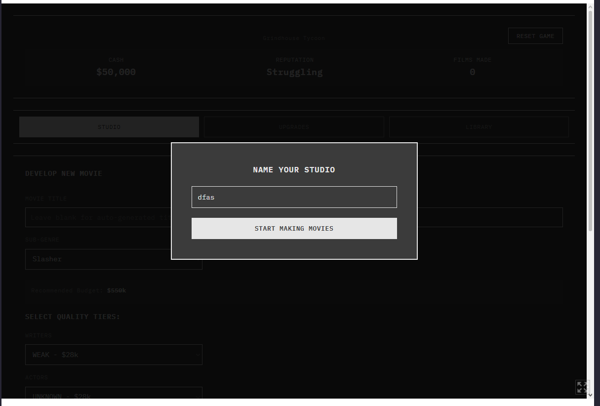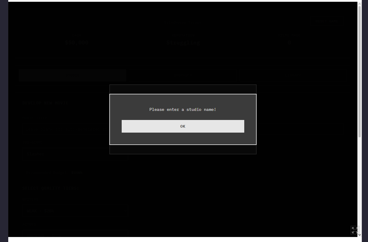 Anytime I do it just does nothing but if I press it with no name it says please enter a studio name