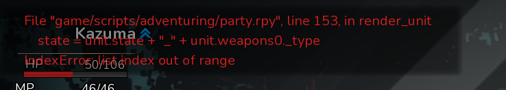 This error occurs during noble girl rescue quest once I enter a fight after freeing her. It breaks the game once her turn is done.