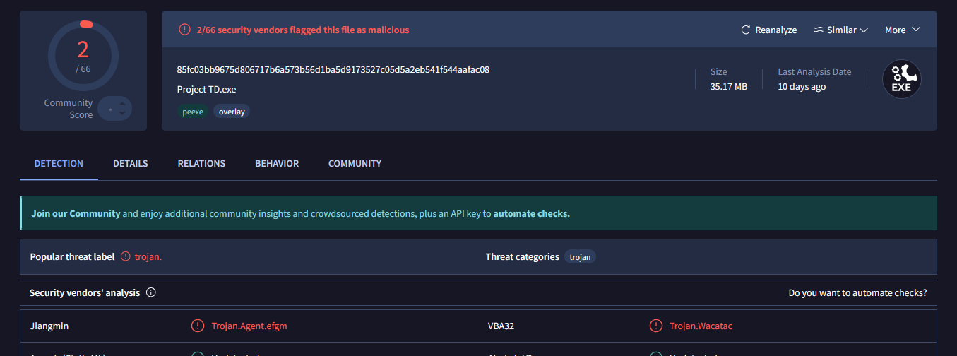 I packed it with an official licence on Game Maker and nothing else, and i'm the only to have access on the code, probably a false positive if you downloaded it from itch.io