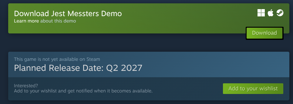 It's already on Steam! https://store.steampowered.com/app/4293120/Jest_Messters/