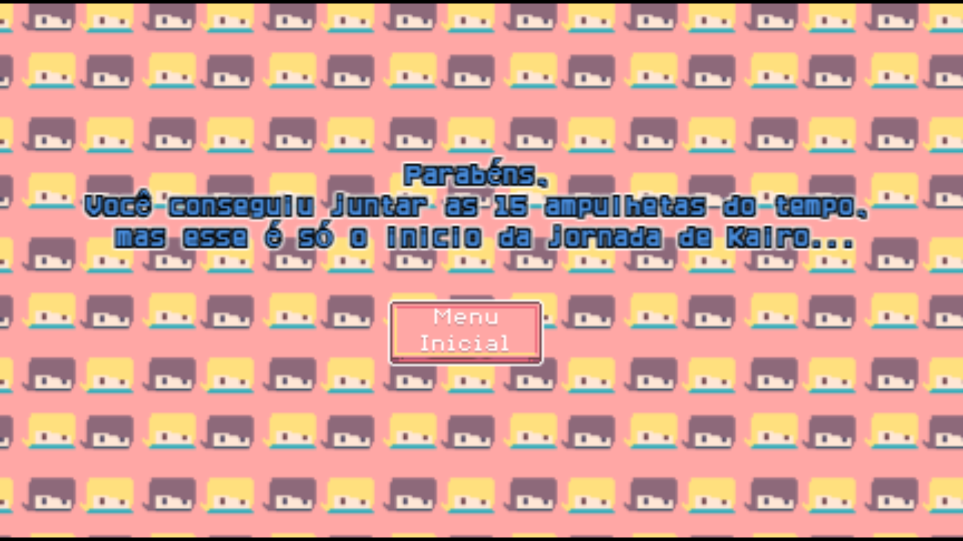Olá Farias!Consegui juntar as 15 ampulhetas do tempo! heheBem bacana essa mecânica de parar o tempo quando o personagem se move para frente e esta mudança das cores que acontece também. Parabéns!