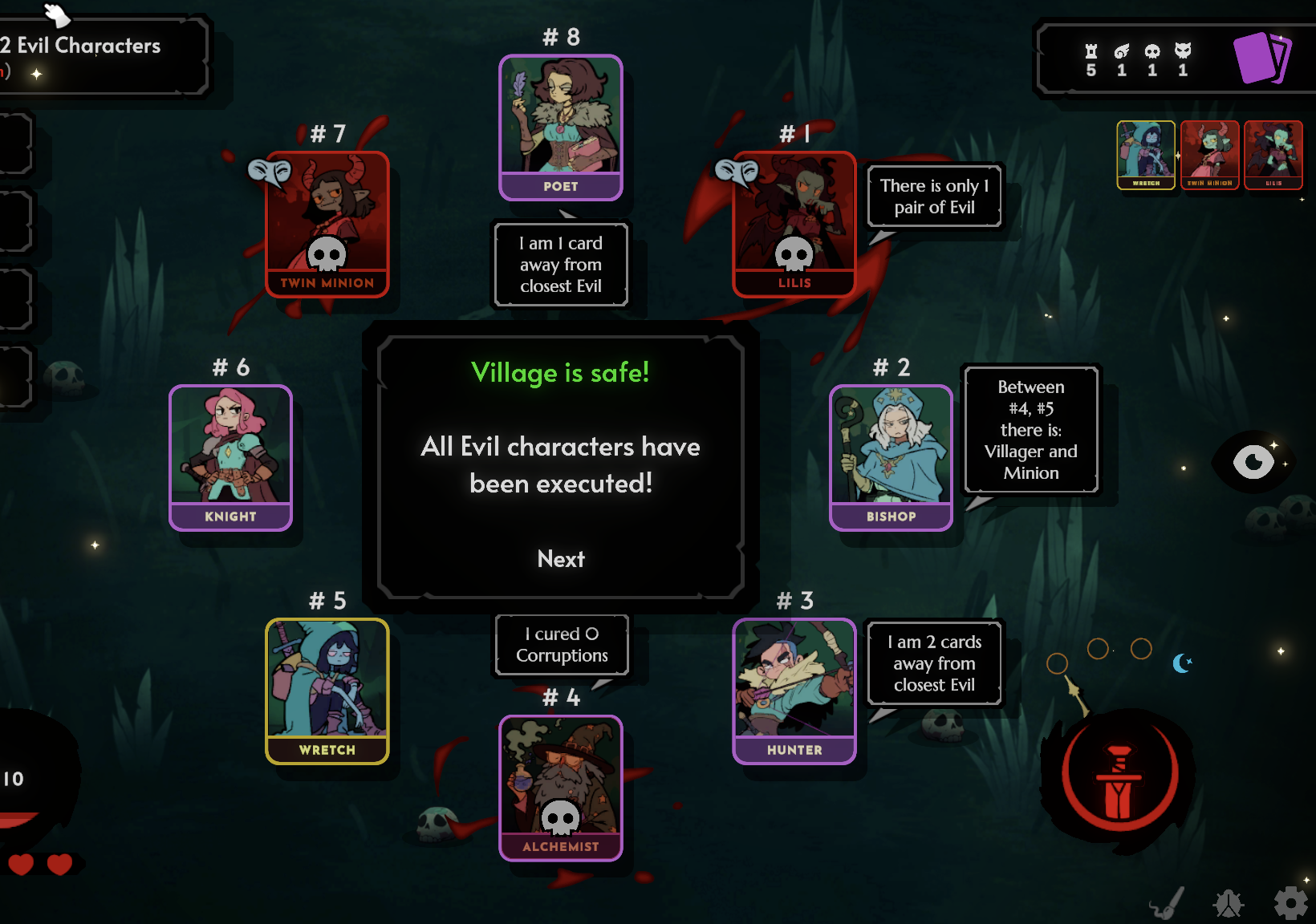 #5 (Wretch) appeared as a Minion to BishopWretch - can appear as any Evil Minion to other characters, so thats mainly what happened