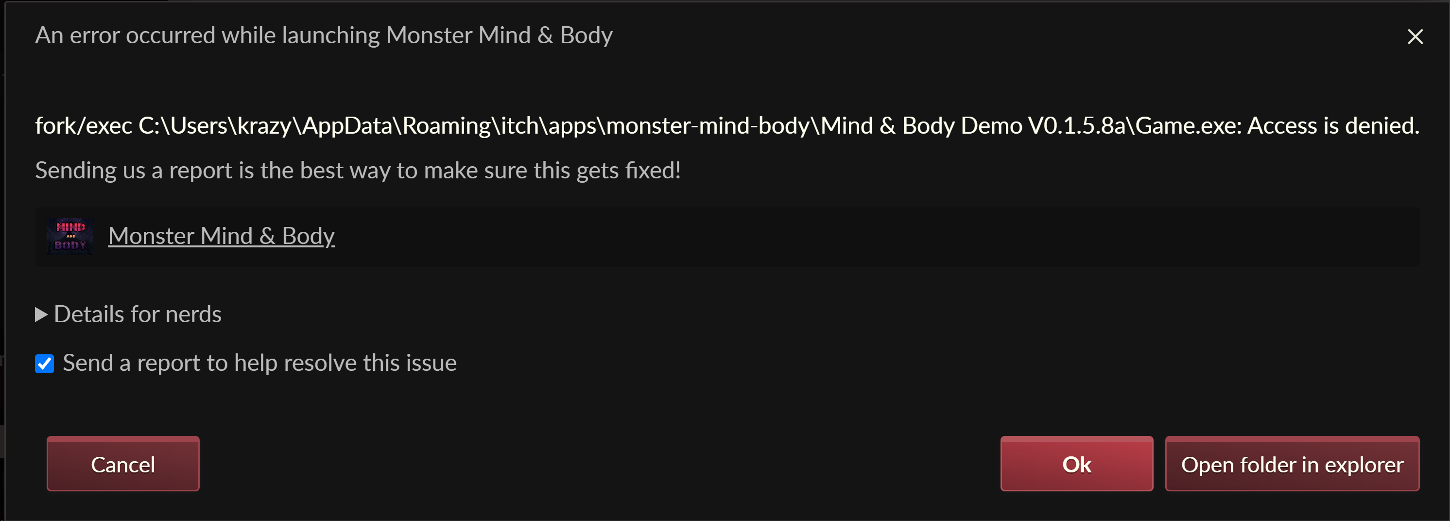 Not sure what happened, but this happened while using the Itch launcher. Whatever, no issues, I started the game from the install folder, and after running the game from the actual exe from the folder, I have no save file. Aside from that, I am loving the demo so far. Put probably 10+ hours into it, trying to farm and whatnot, so rather unfortunate to lose my progress, but I guess I know now to not use the Itch Launcher.