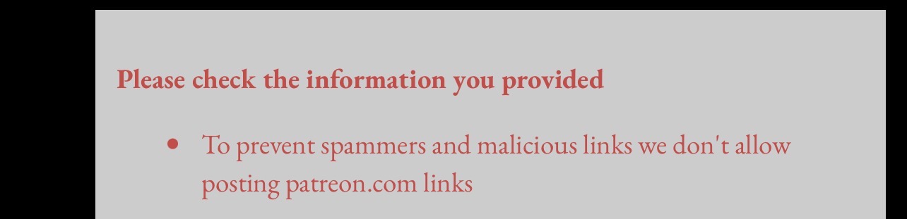 Yes, itch actually doesn’t allow Patreon links due to scammers. If you attempt to post a link it’ll show this.