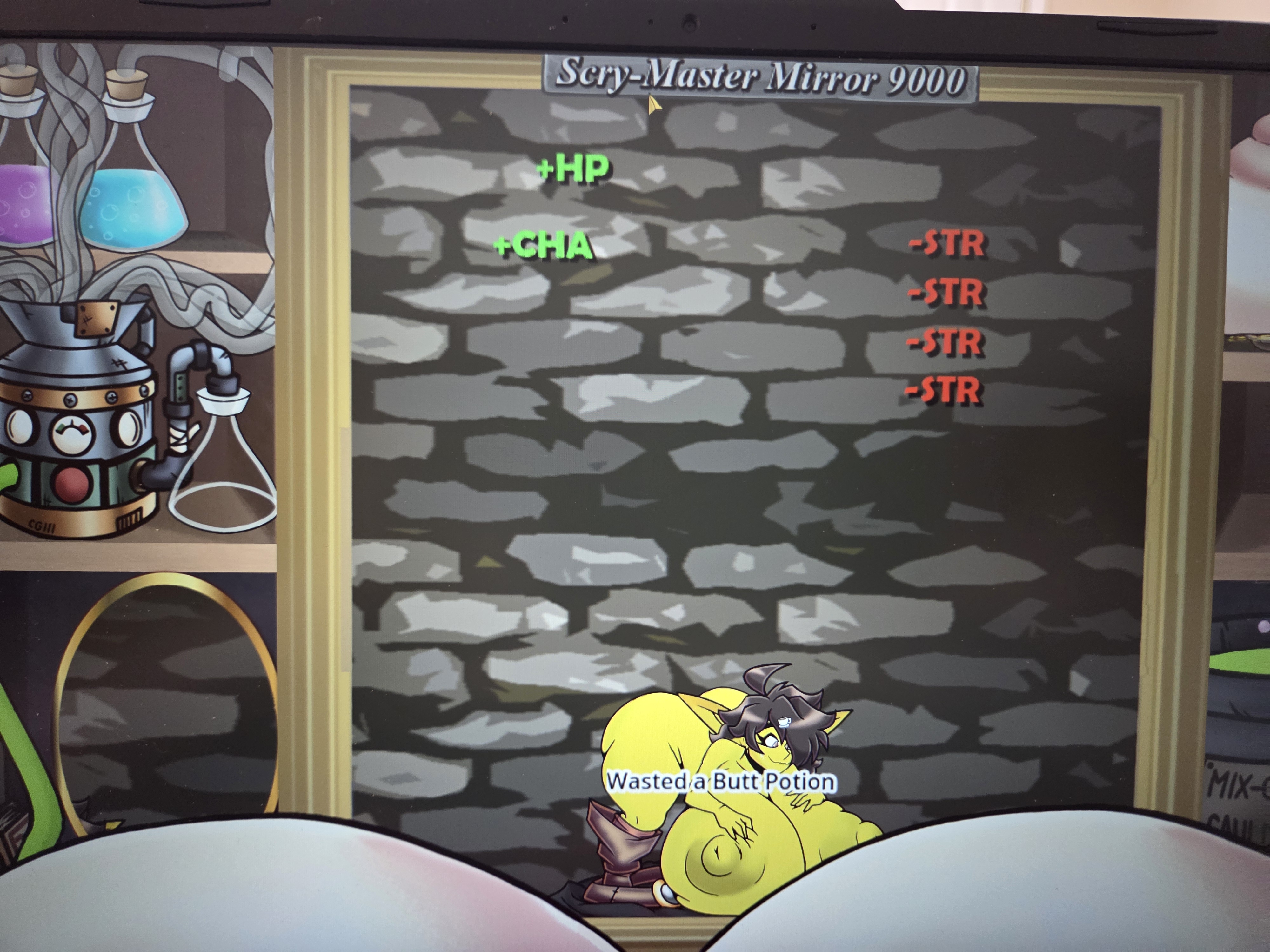 Mocha always fights skeletons. You can’t give a butt potion when they’re fighting a skeleton (they’re weak to the bludgeoning damage of a butt in motion)