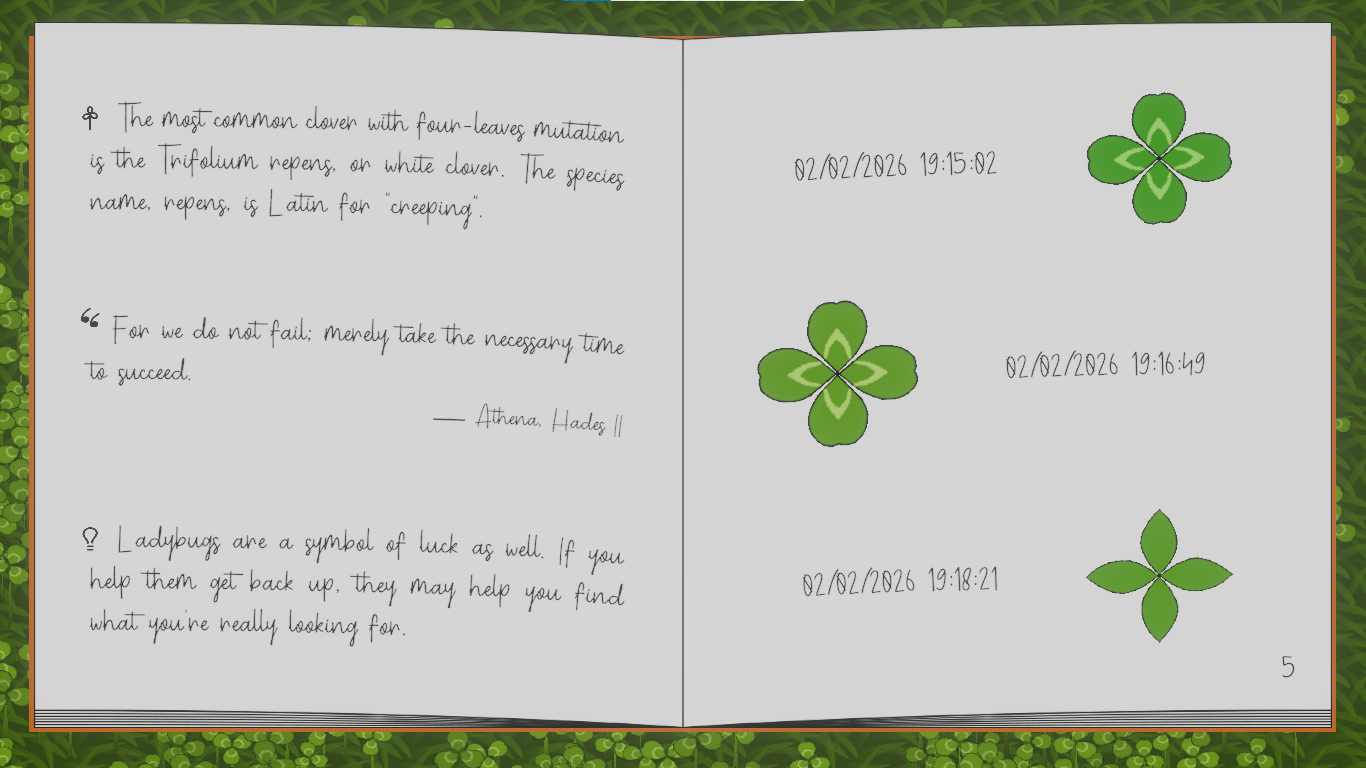 Nice! That’s a lot of four-leaf clovers. Hope you had fun! There are still some pages to uncover, if you ever want to test your luck again.