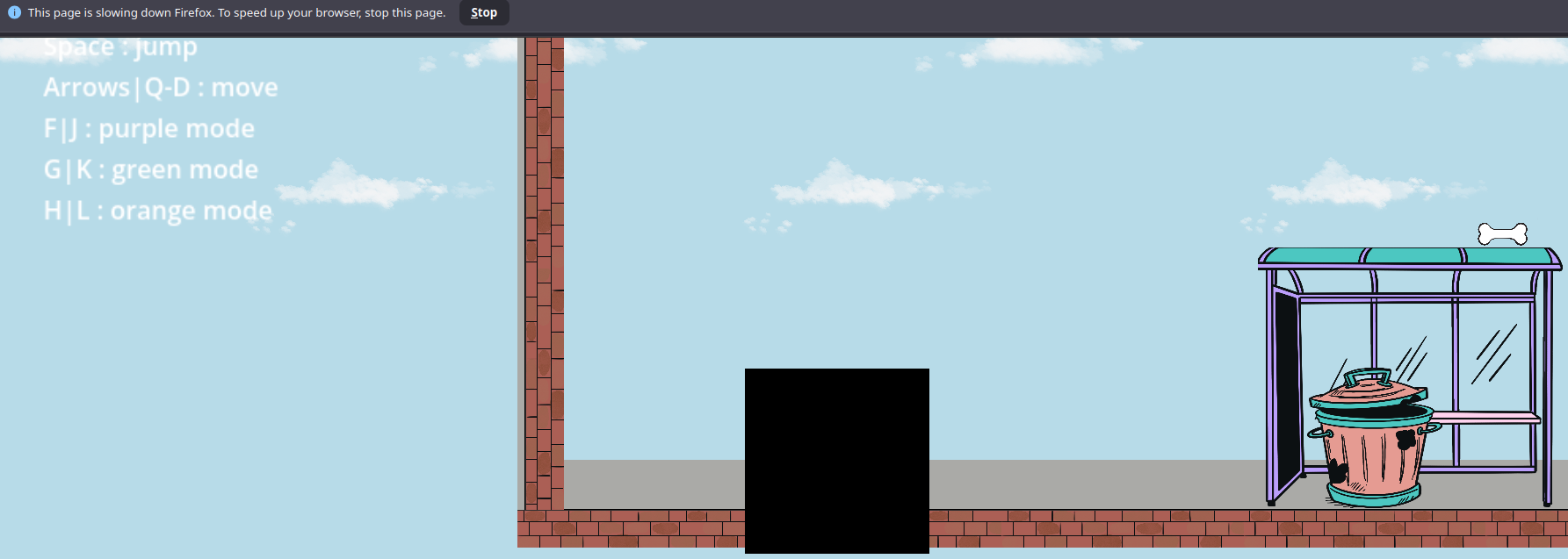A black square appears there when the character moves. The third level is frozen. You put everything on one scene, right?