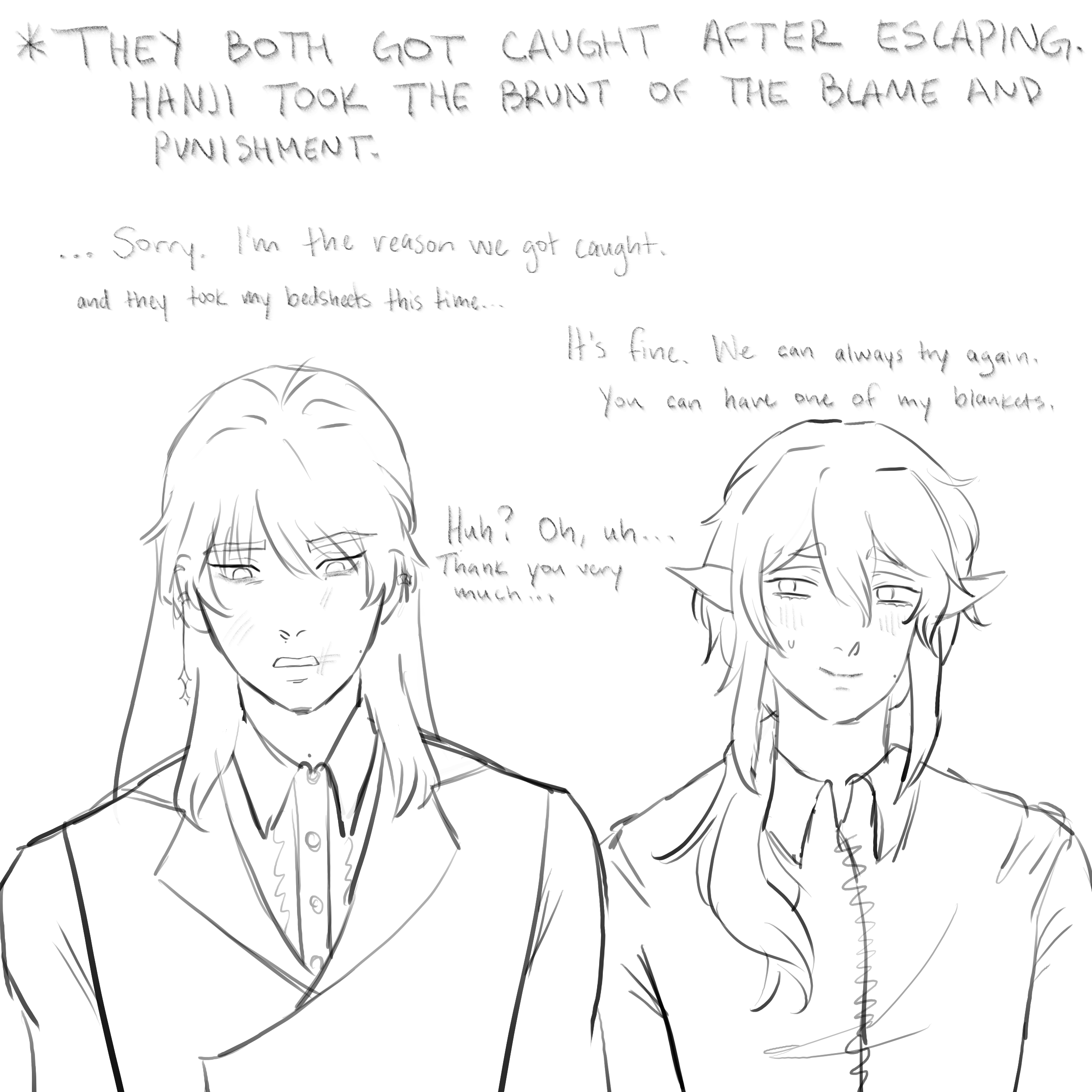 speaking of drawing , everyone's art is so so beautiful. i'm worried to clog up this comment section's notifications 10 times so i haven't replied to anything individually but i wanted to say your art styles are all so uniquely gorgeous ... i usually never color anything since its so time consuming but seeing how everyone else used color i was inspired lol ! anyways your MCs are all very lovely and i hope they find joy with these monstrous men