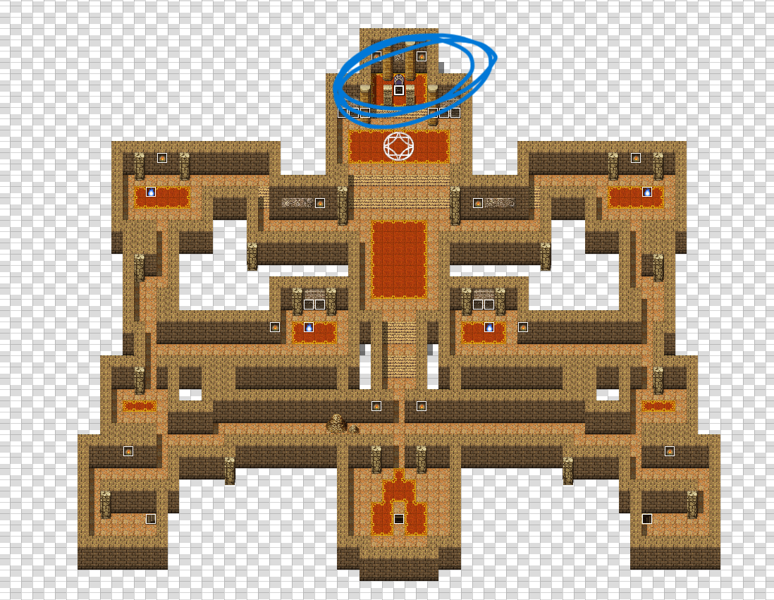 You can find the king's soul in the lower tomb by messing with a coffin along the northern part (circled). I think you need to have Sazaho in the party but I'm not certain.