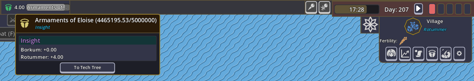 On Rotummer is 4 insight on 5 speed become 100. It can make the blessing depend on the temple level. And the insight only depends on the presence of a temple on the island and does not depend on the radius and change the cost of technology accordingly.