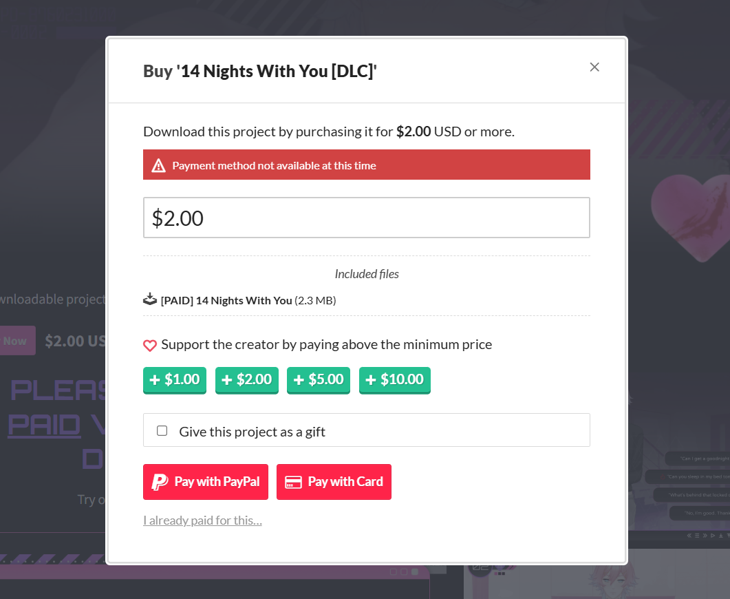 I tried to pay for the DLC with Card but it gave me error. Please help me.