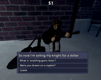 It was a lot of fun hunting for the different pieces and cobbling together my chess ensemble. "Pawn Shop" was a cute play on words. The snow crunching sound was a nice touch. I slipped in the oil multiple times. The guy who answered the door scared me haha. For some reason it took me longer to beat the tutorial than it did to beat the rest of the game (my opponents just kept leaving their kings wide open). This was an enjoyable, chill time overall. Nice work!