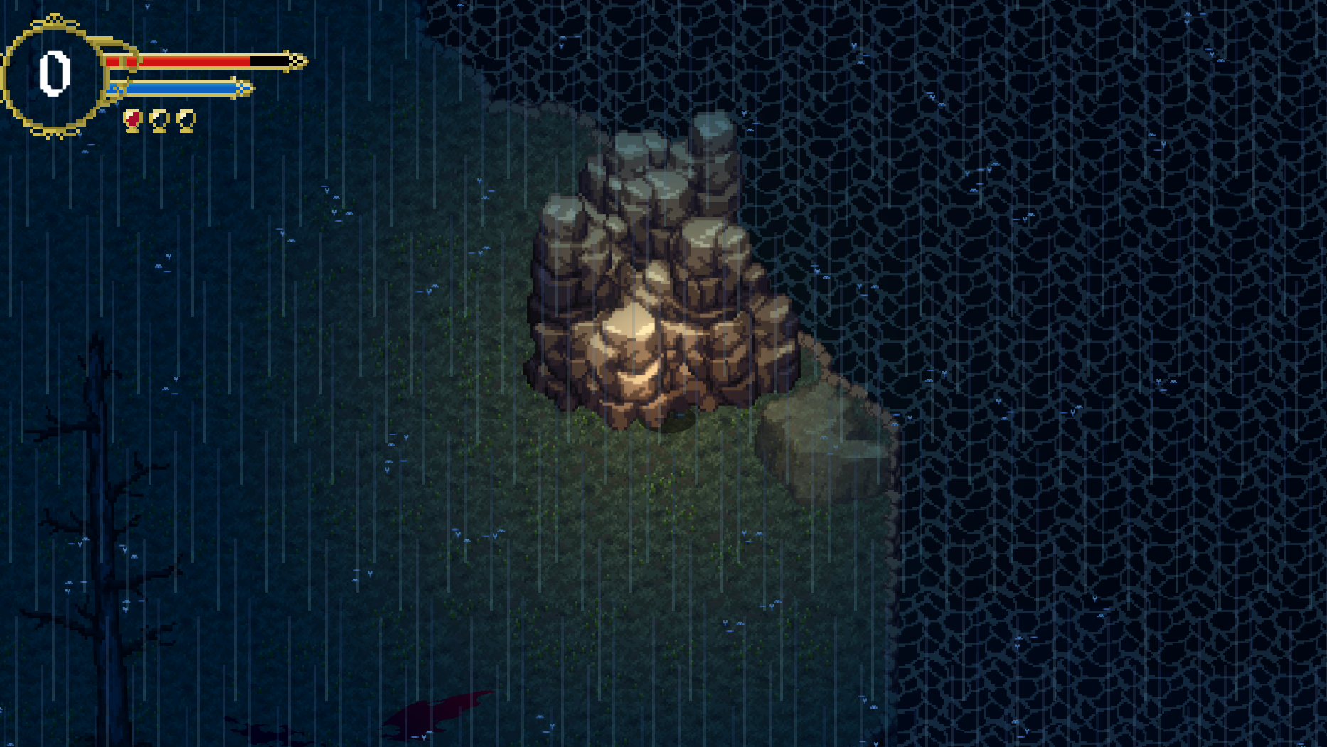 The game has a lot of neat things going on and a good area discovery. (Played the game in browser using keyboard) The game has some very interesting art for sprites and map tiles. The attack animations and weather animations were great too.