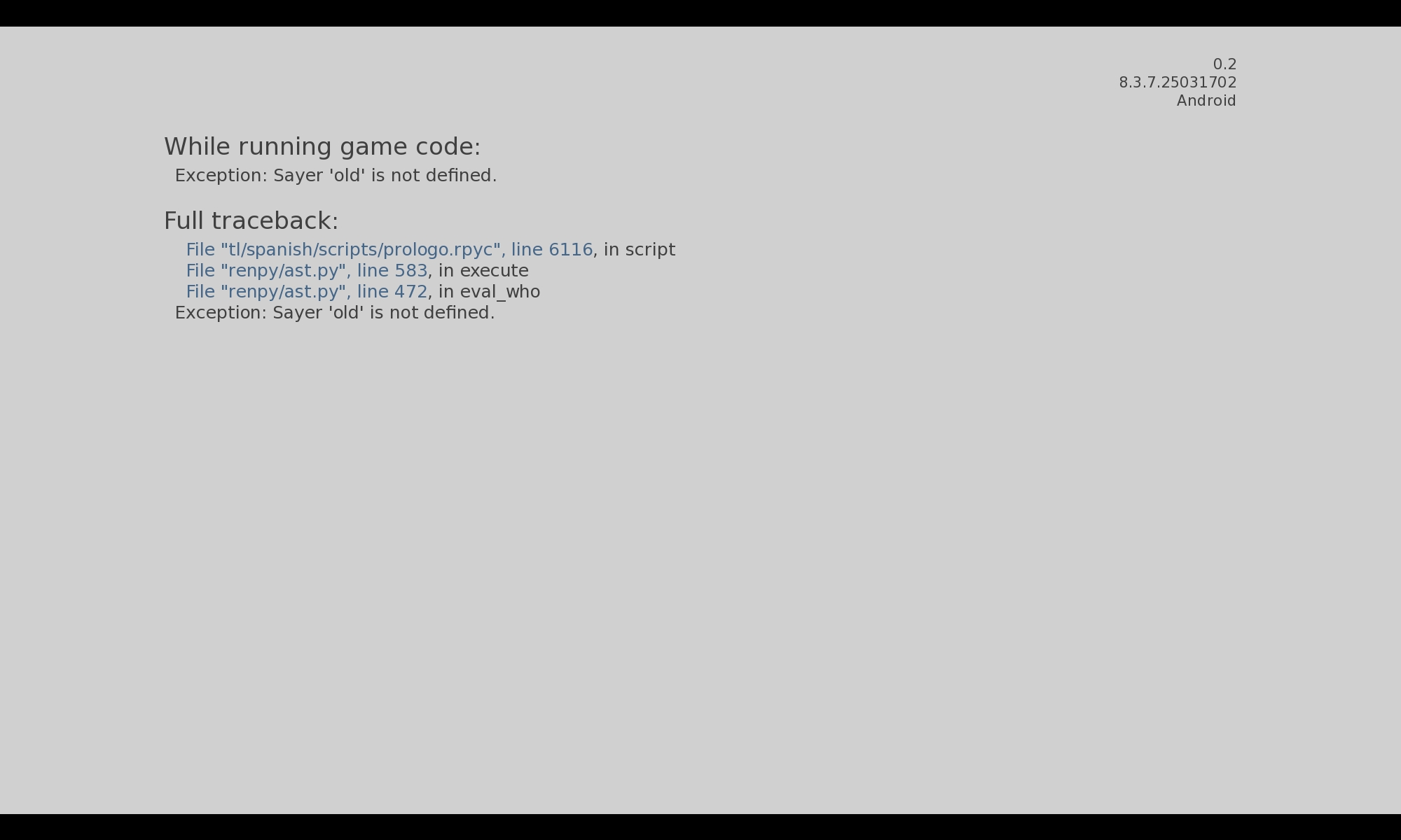 ¡Mil disculpas por esto! Es un error específico que está ocurriendo con la traducción al español :( . Ya estoy trabajando en ello y pronto lanzaré una actualización con el bug corregido y, de paso, ¡con artes nuevas!