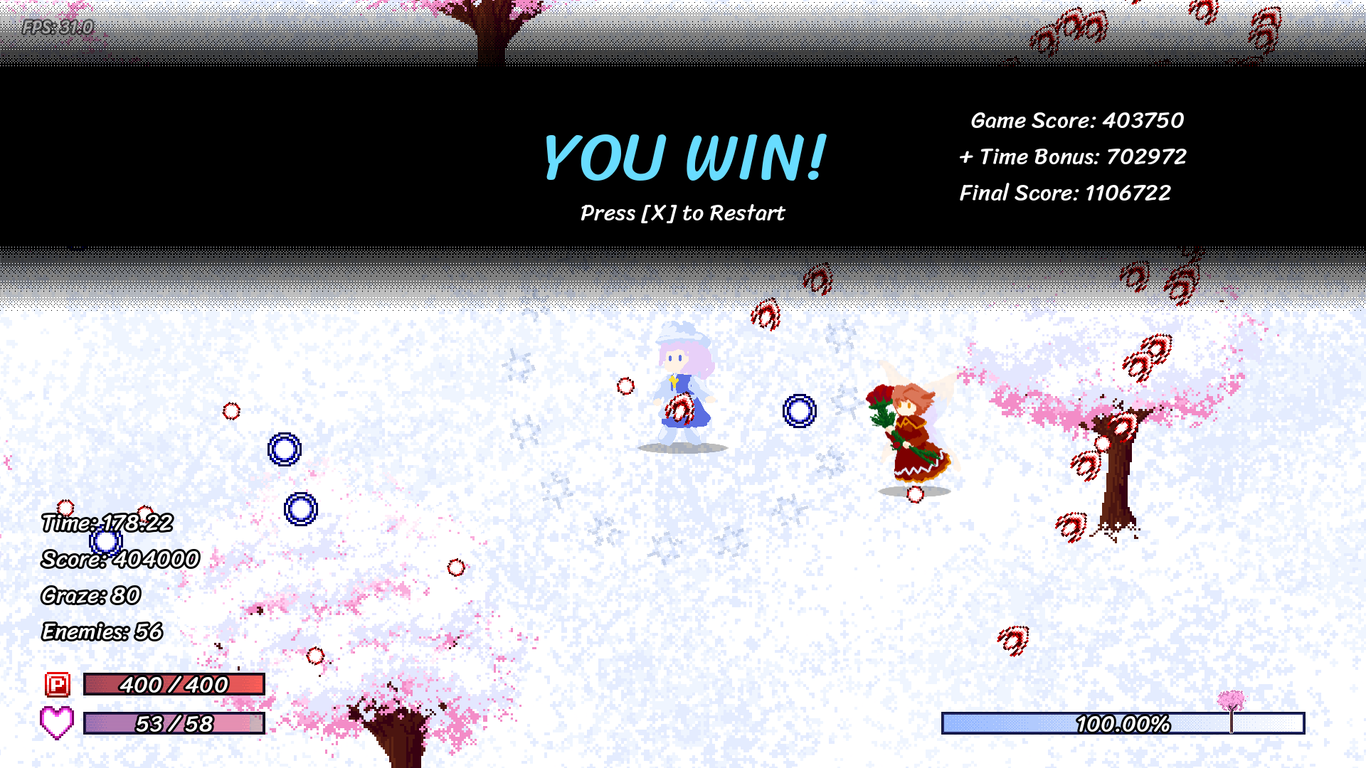Cute game. Due to the awkward location of my laptop and positioning of my arms, I ended up doing a pacifist run. Cleared it on my first try.