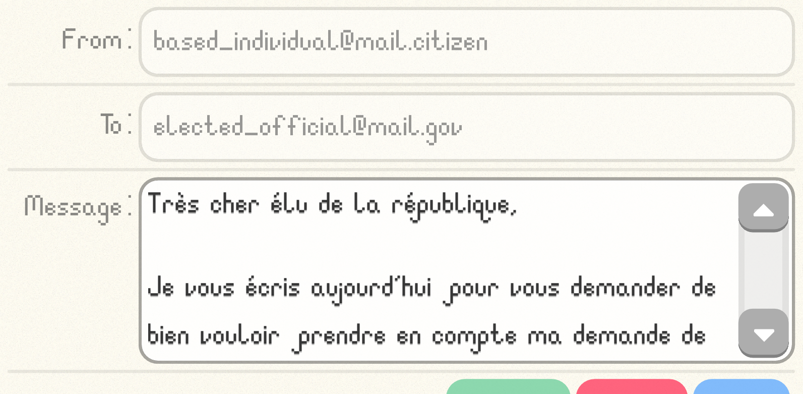 I use it here in a mini game where you'll have to write to your elected official.