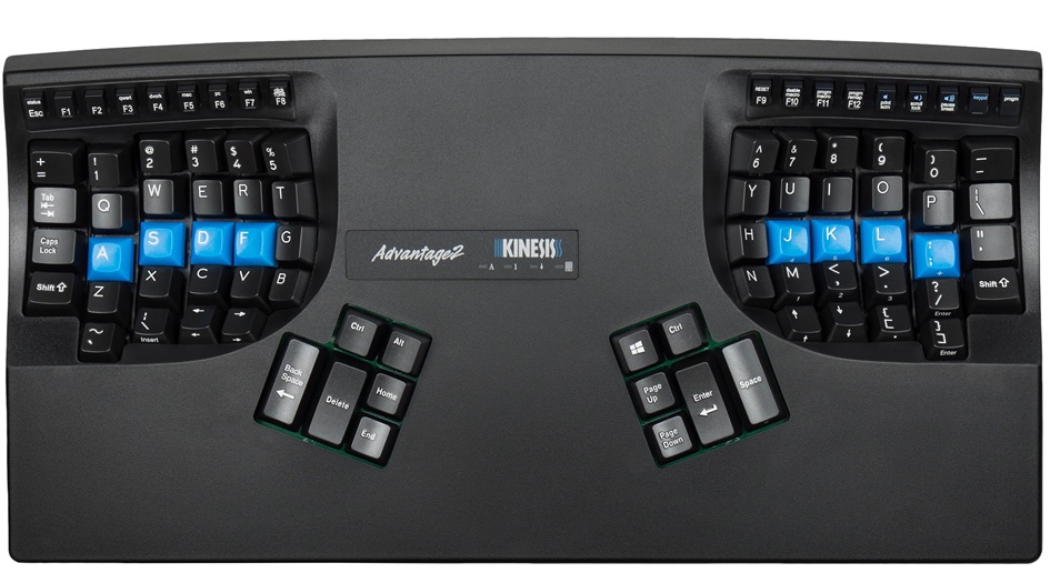 And here’s the Kinesis keyboard. Since keys are vertical, I only have one key directly above. Thankfully you don’t require them in order (and preserve hits), so technically I can hit the key directly above and then figure out if I need to go right or left BUT this slows me down quite a bit. I think this could actually solved by making the timeout adjustable.