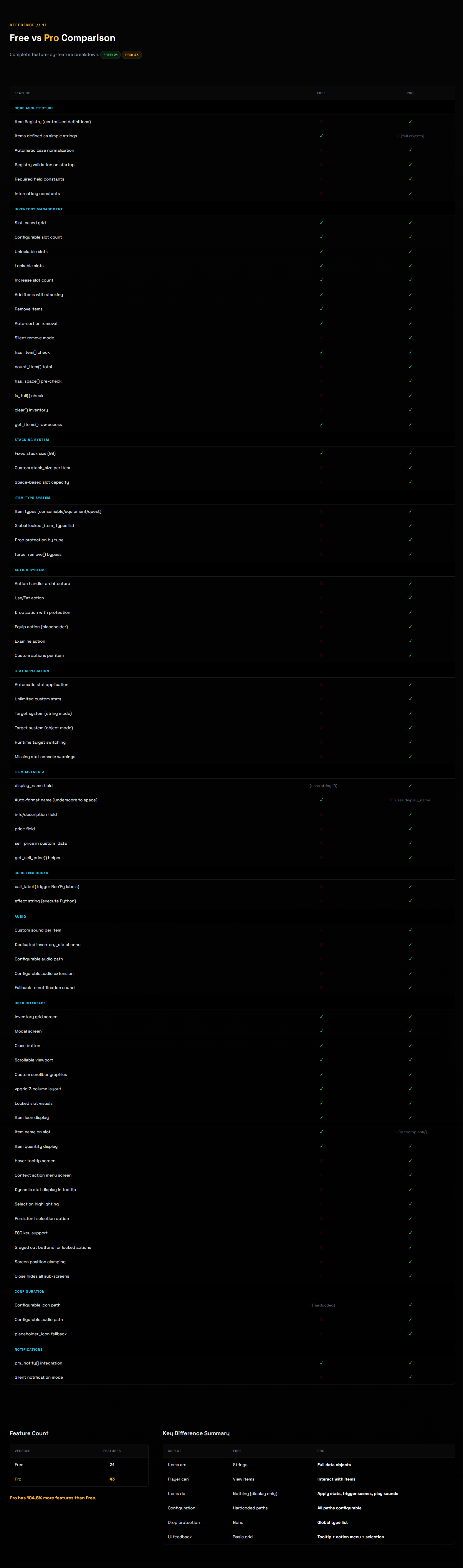 To give you an idea of what this framework covers: it’s built for serious game development, whether you’re making dating sims, RPGs, or other story‑driven titles. It includes all the typical features you’d expect, like inventory systems, menus, tool actions, eating/consuming mechanics, and more. It’s already close to being a complete solution, and because it’s robust, the present status is complete; if there are any missing features, they can be added later without issue.