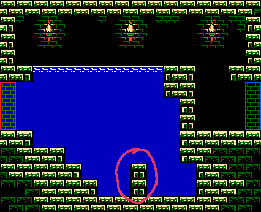 The best course of action is to include a little platform at the bottom of the water, just enough that can you jump back into the previous room... especially because I also noticed an even bigger problem down the road with that path. Without a way back, if you did not grab the super fireball, you are equally trapped. So yeah, this map room needs the means to return to the previous room, which I have added for 1.03a.
