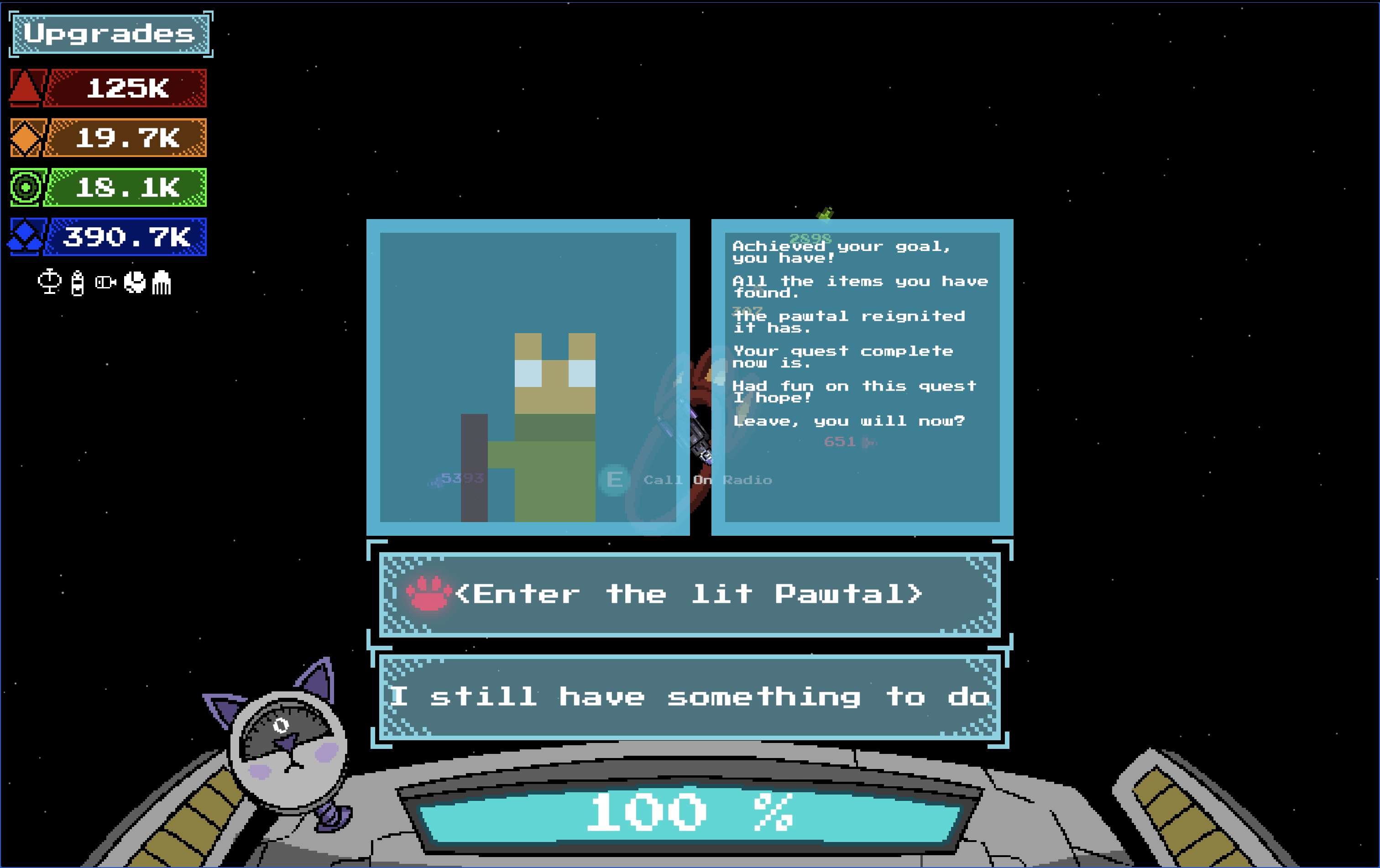 I also tried to max out power ups but it doesn’t seems to have an end ? When I reached the last planet I one shotted everything and had to go back to the NPC (Meowgurt if I remember correctly) I wanted to check back in the game but I see that my progress didn’t register when I reloaded the page… :(