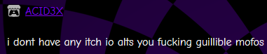 Dorkfishie He replied by sending me a picture of ACID3X/pyramix saying he doesn't have any other accounts, and then he insults me. I mean, pyramix told me that, but Dorkfishie sent it to me.